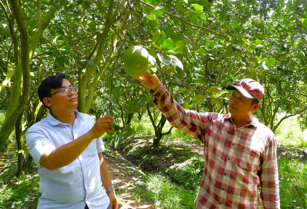 สวนส้มโอเขียวขจีของนายดวง วัน กา ทา (อาศัยอยู่ในหมู่บ้านกา ตรอต ตำบลคานห์ ฮุง) ยังคงเขียวชอุ่มตลอดฤดูน้ำท่วม