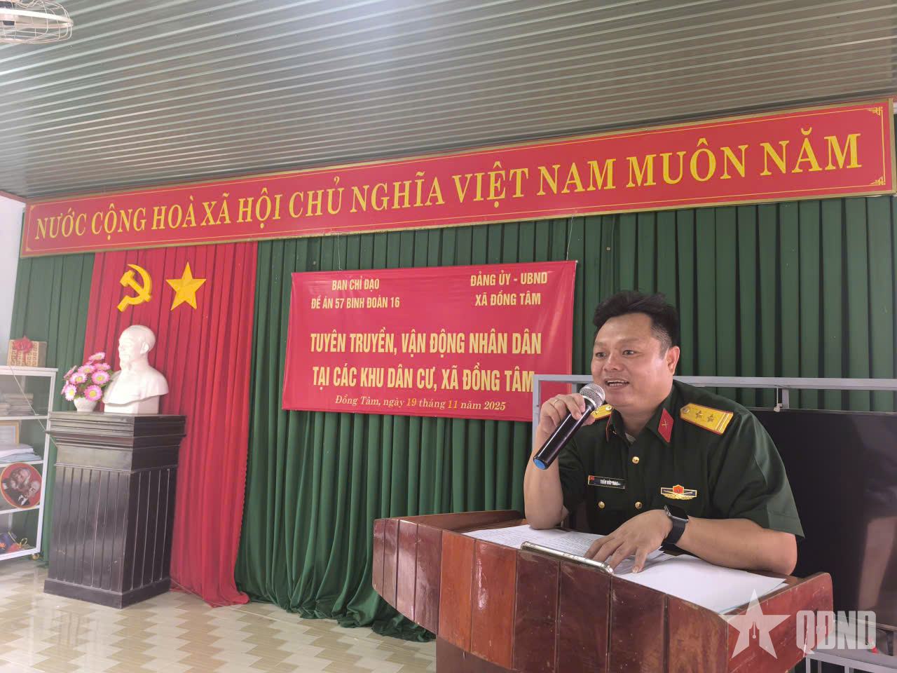 ในบริบทดังกล่าว การปรากฏตัวของเจ้าหน้าที่และทหารจากกองพลที่ 16 สร้างภาพลักษณ์ที่สวยงามและเป็นมิตร ทหารที่มีกิริยามารยาทเรียบง่ายและเป็นมิตรไม่เพียงแต่เข้าร่วมการประชุมเท่านั้น แต่ยังปฏิบัติภารกิจสำคัญ นั่นคือการเผยแพร่และเผยแพร่เนื้อหาของโครงการ 57 โดยมุ่งเน้นการเผยแพร่เนื้อหาต่างๆ ได้แก่ แนวปฏิบัติและนโยบายของพรรค นโยบายและกฎหมายของรัฐเกี่ยวกับการป้องกันประเทศและความมั่นคงในพื้นที่ชนกลุ่มน้อยและเขตภูเขา การวางแผนและกลอุบายของกองกำลังฝ่ายต่อต้าน ฝ่ายฉวยโอกาสทางการเมือง เพื่อฉวยโอกาสจากสถานการณ์ที่ซับซ้อนในสังคม การป้องกันและปราบปรามผลกระทบอันเลวร้ายจากแอลกอฮอล์และเบียร์ และการสร้างความตระหนักรู้เกี่ยวกับการปฏิบัติตามกฎจราจร การร่วมมือกันดูแลการผลิตแรงงานเพื่อพัฒนา เศรษฐกิจ ครอบครัว การส่งมอบอาวุธ วัตถุระเบิด และเครื่องมือสนับสนุนที่ผิดกฎหมายโดยสมัครใจ ขณะเดียวกันก็ปฏิบัติตามกฎหมายว่าด้วยการสมรสและครอบครัว กฎหมายว่าด้วยการป้องกันและควบคุมยาเสพติดอย่างเคร่งครัด เฝ้าระวังนายหน้า นักต้มตุ๋น และผู้ที่ฉวยโอกาสจากการแต่งงานเพื่อก่ออาชญากรรมในพื้นที่ชนกลุ่มน้อย ป้องกันและควบคุมโรคของมนุษย์ สร้างความตระหนักรู้เกี่ยวกับวิธีการป้องกันการฉ้อโกงบนเครือข่ายสังคม การค้ามนุษย์และเด็ก และการแนะนำงาน "งานเบา เงินเดือนสูง"...