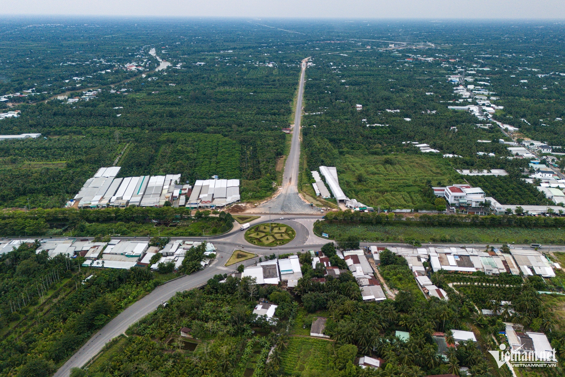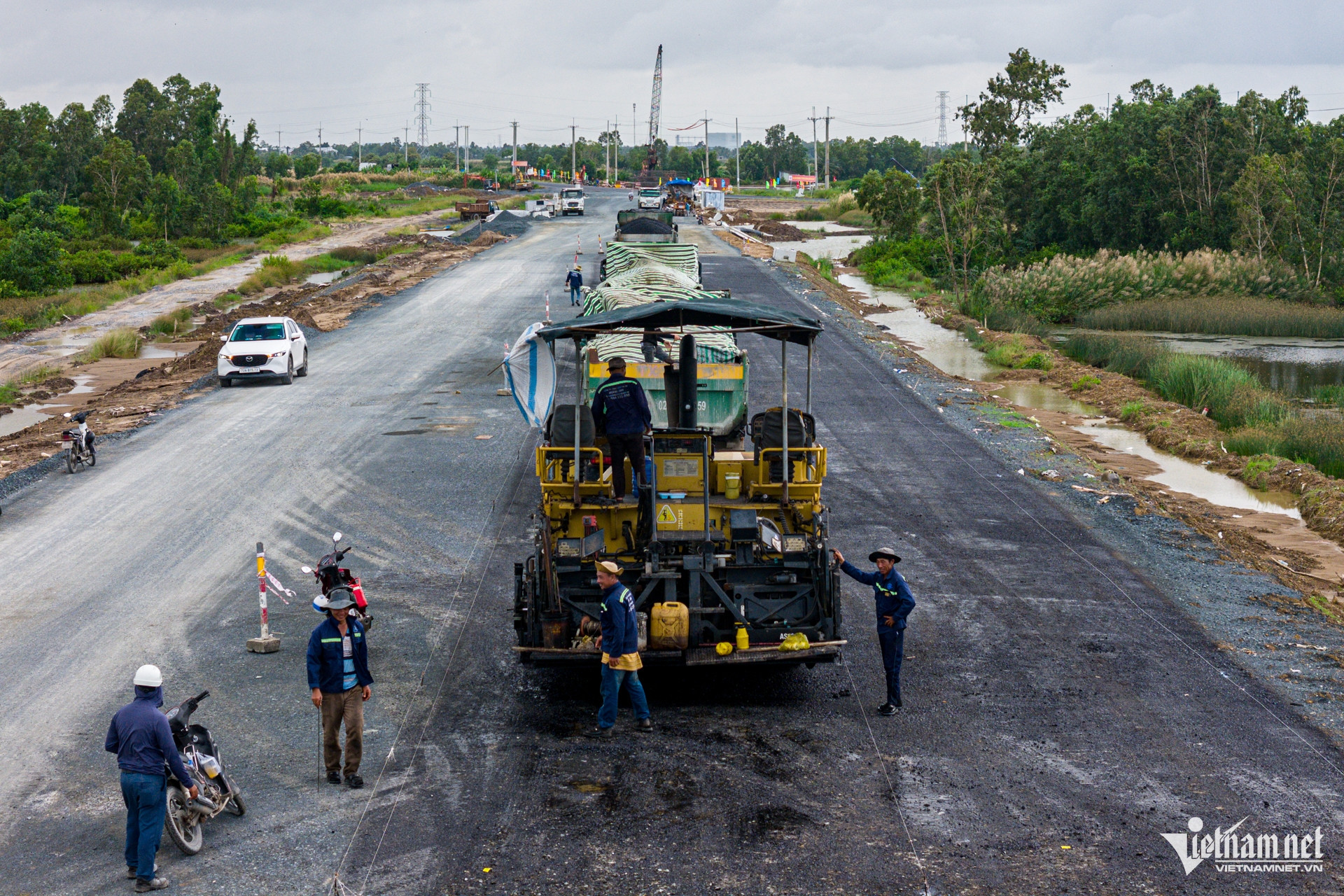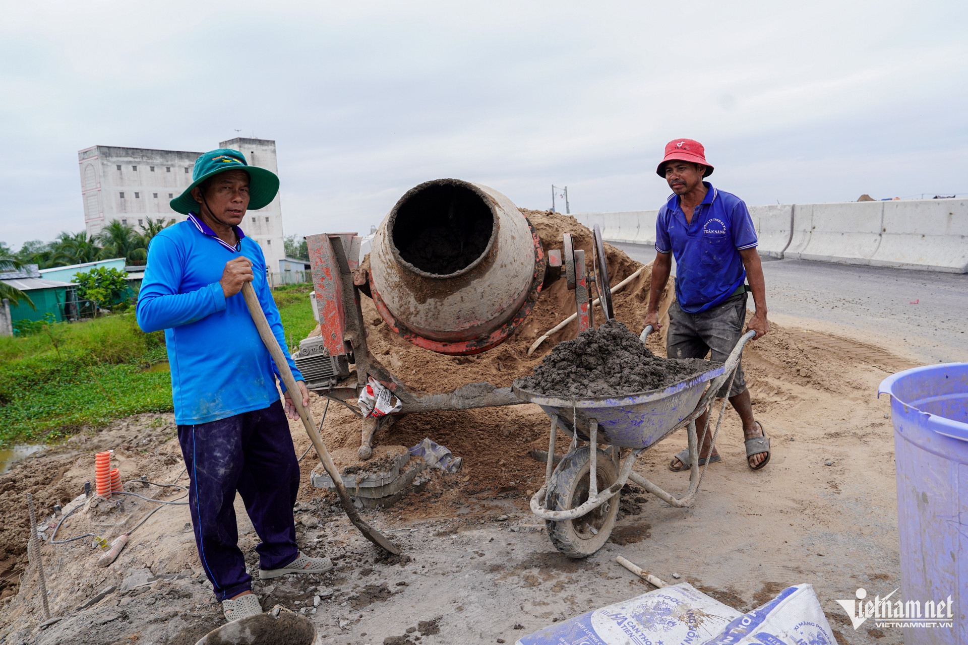 ทางแยกระหว่างทางด่วน Can Tho – Ca Mau และทางหลวงแผ่นดินหมายเลข 61 เริ่มเป็นรูปเป็นร่างแล้ว แต่ทางเข้ายังไม่ได้ถูกปรับระดับด้วยหินบดที่สม่ำเสมอ