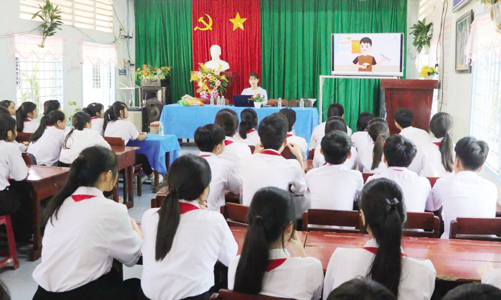 บรรยากาศคึกคักและน่าตื่นเต้นในการประชุมเพื่อเผยแพร่ความรู้เกี่ยวกับความเท่าเทียมทางเพศและการป้องกันการล่วงละเมิดทางเพศ (XHTD) ให้กับนักเรียนชั้นประถมศึกษาปีที่ 8 และ 9 จำนวน 70 คน ณ โรงเรียนมัธยมศึกษาฮอยอันดง (หมู่บ้านอันถั่นดง ตำบลหมี่อันหุ่ง) ซึ่งจัดโดยกระทรวงมหาดไทย กิจกรรมนี้จัดขึ้นเพื่อตอบสนองต่อเดือนแห่งการลงมือปฏิบัติ