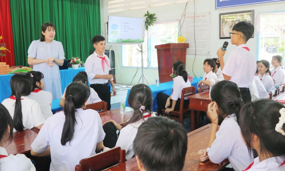 ในช่วงการสื่อสาร นักศึกษาได้รับการนำเสนอเนื้อหาเชิงปฏิบัติมากมายเกี่ยวกับความเท่าเทียมทางเพศและการป้องกันการล่วงละเมิดเด็ก โดยคุณ Nguyen Thi Minh Thuy หัวหน้าแผนกก่อสร้างของรัฐบาล กรมกิจการภายในประเทศ