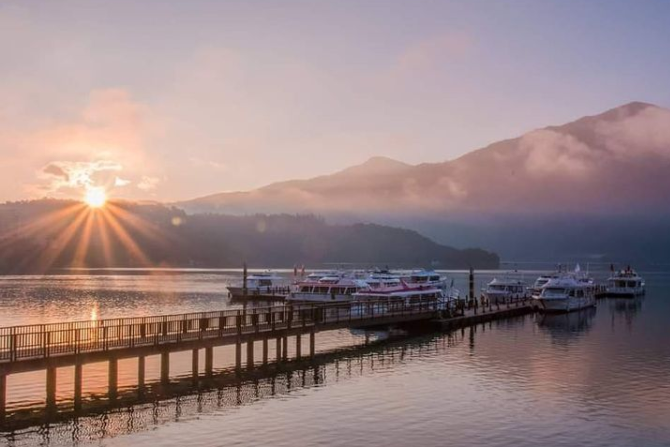 พระอาทิตย์ขึ้นอันงดงามที่ทะเลสาบสุริยันจันทราในเช้าฤดูหนาว (ที่มาของภาพ: รวบรวม)