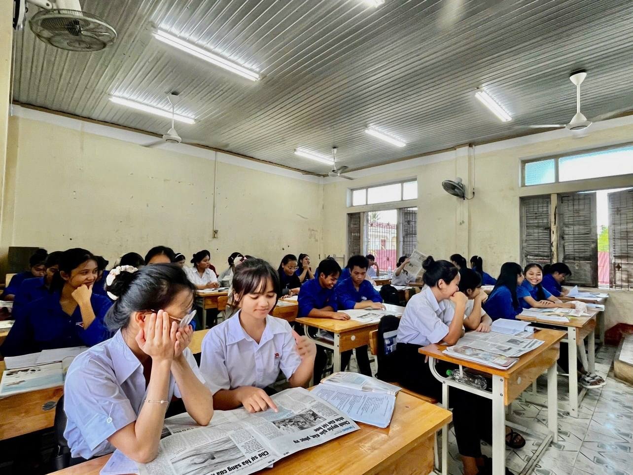 หนังสือพิมพ์ที่ห้องสมุดโรงเรียนให้ความสำคัญคือหนังสือพิมพ์ดานัง เพราะเป็นช่องทางข้อมูลที่ใกล้ชิด สะท้อนถึงสถานการณ์ ทางเศรษฐกิจ วัฒนธรรม และสังคมในท้องถิ่นและบริเวณที่นักเรียนอาศัยอยู่ได้อย่างชัดเจน