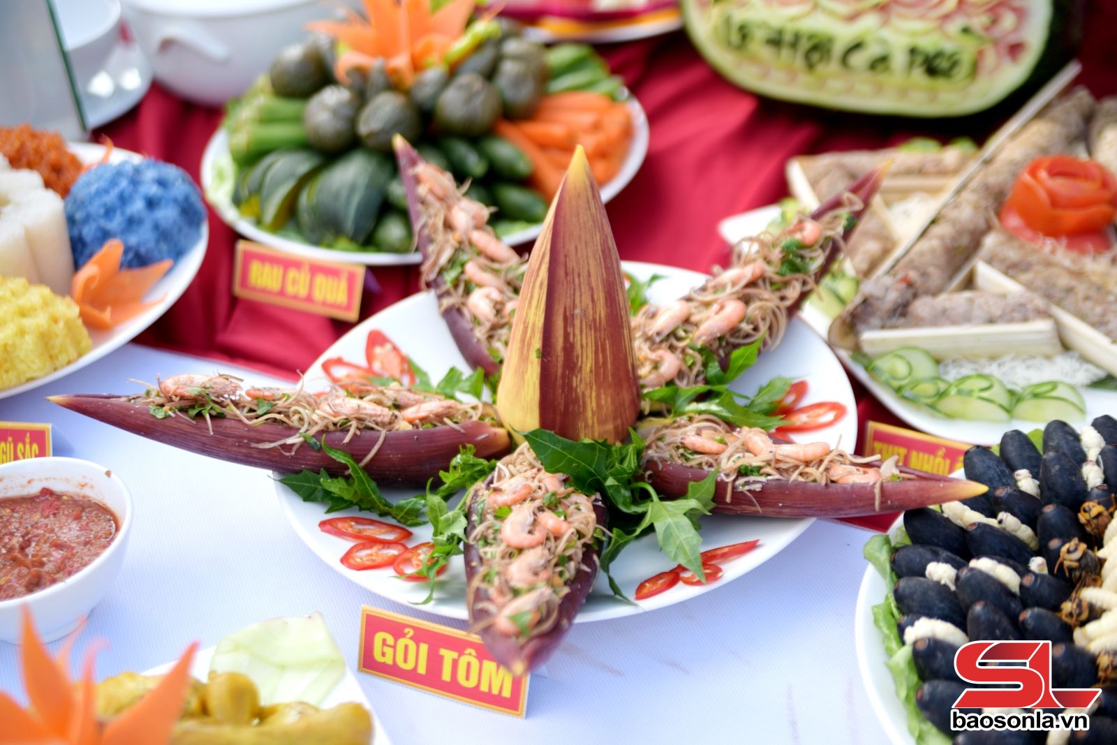 ณ พื้นที่จัดแสดงนิทรรศการ ถาดอาหาร 27 ถาด ซึ่งเป็นตัวแทนของหมู่บ้าน กลุ่มที่อยู่อาศัย และหน่วยงานต่างๆ ได้นำเสนออาหารพื้นเมืองของกลุ่มชาติพันธุ์ในพื้นที่ ตั้งแต่ข้าวเหนียวห้าสี เนื้อรมควัน ปลาแม่น้ำย่าง หน่อไม้ดองรสขม ไปจนถึงอาหารที่ทำจากผลผลิตทางการเกษตรท้องถิ่น... ล้วนสร้างสรรค์ภาพอาหารอันอุดมสมบูรณ์ อบอวลไปด้วยรสชาติของเทือกเขาและป่าไม้ทางตะวันตกเฉียงเหนือ