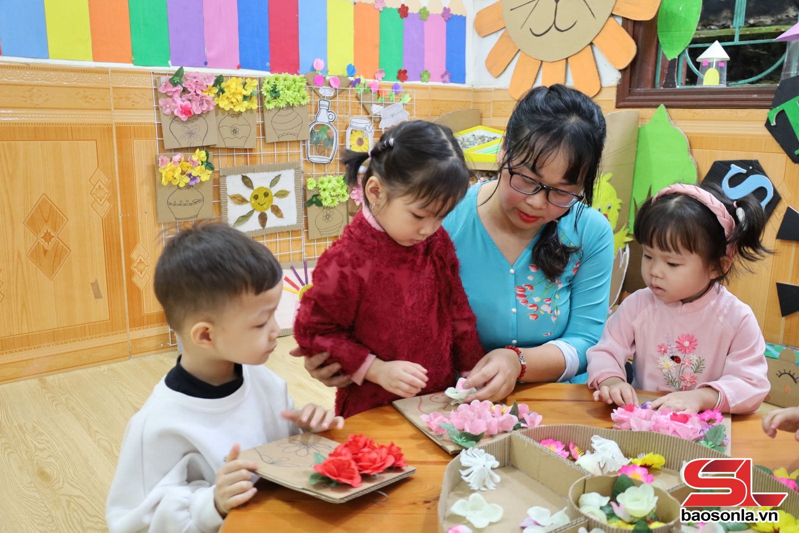 เพื่อนำการศึกษา STEM ไปใช้ในโรงเรียนอนุบาลได้อย่างมีประสิทธิภาพ บุคลากรและครูได้ร่วมกันสร้างสรรค์ ออกแบบ และปรับเปลี่ยนสภาพแวดล้อมการเรียนรู้ให้เหมาะสมกับแต่ละช่วงวัยอย่างแข็งขัน คุณเหงียน ถิ เหลียน ผู้อำนวยการโรงเรียนอนุบาลหง็อก ลิญ กล่าวว่า “โรงเรียนได้ใช้พื้นที่ที่มีอยู่ให้เกิดประโยชน์สูงสุดในการสร้างสภาพแวดล้อมการเรียนรู้แบบเปิด ส่งเสริมให้เด็กๆ ได้สัมผัสและสำรวจความเป็นจริง ครูส่งเสริมความคิดสร้างสรรค์ ออกแบบสื่อการเรียนรู้ของตนเอง จัดสภาพแวดล้อมในห้องเรียนให้เป็นมิตร และเพิ่มปฏิสัมพันธ์ระหว่างกัน”