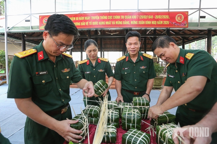 | กรมการ เมือง ของกองทัพภาคที่ 7 ได้จัดกิจกรรมทำขนมบั๋นจุงและบั๋นเต็ต (ขนมเค้กข้าวแบบดั้งเดิมของเวียดนาม) |
