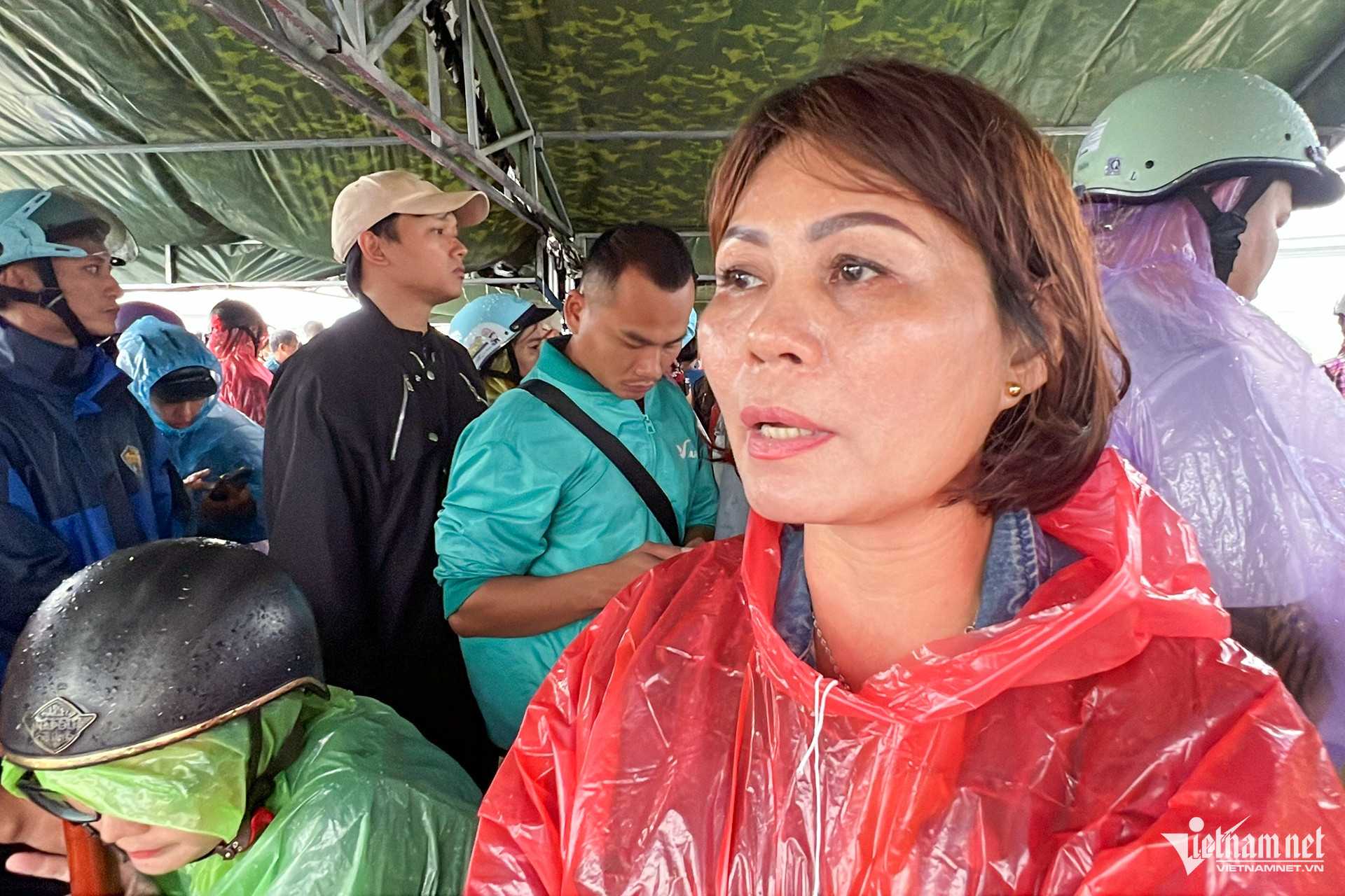 ที่สี่แยกหง็อกฮอย เขตเตยญาจาง ครอบครัวของหวอดิ่ญจี (อายุ 32 ปี) จำนวน 6 คน เปียกโชกและเหนื่อยล้าหลังจากติดอยู่ในน้ำท่วมนานกว่าหนึ่งคืนบนถนนเก๊าดื่อหวาฟูนอง เขตเตยญาจาง หลังจากได้รับสิ่งของจำเป็นจากเจ้าหน้าที่ ครอบครัวของเขาจึงขึ้นรถไปพักพิงชั่วคราวที่บ้านญาติในเขตนามญาจาง