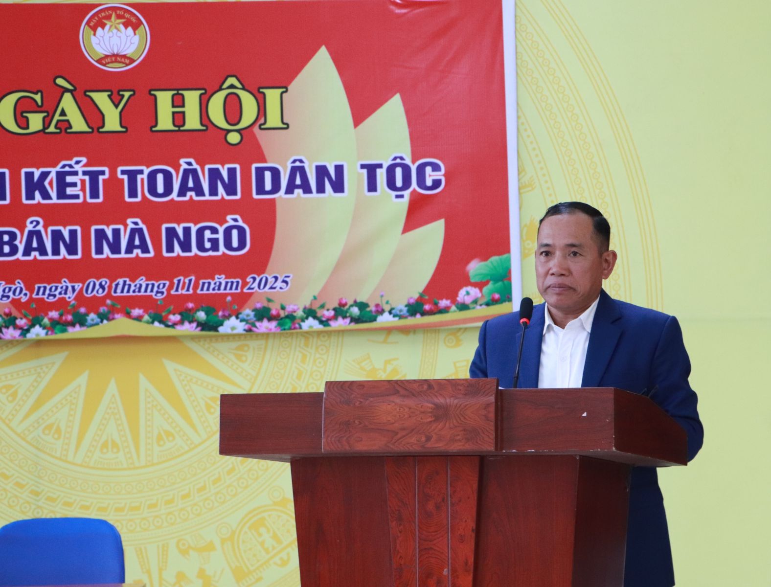 ในงานเทศกาล สหายห่าจ่องไห่ สมาชิกคณะกรรมการพรรคประจำจังหวัด รองประธานคณะกรรมการประชาชนประจำจังหวัด ได้กล่าวยกย่องและยกย่องความสำเร็จและผลงานที่คณะกรรมการพรรค รัฐบาล คณะกรรมการดำเนินงานแนวร่วม และประชาชนหมู่บ้านนาโง ประสบมาโดยตลอด ท่านหวังว่าคณะกรรมการพรรค ประชาชนตำบลน้ำโซโดยรวม และหมู่บ้านนาโง จะยังคงส่งเสริมประเพณีและความสำเร็จอันดีงาม พัฒนานวัตกรรมอย่างต่อเนื่อง ขับเคลื่อนและสร้างสรรค์มากขึ้นในวิธีการทำงาน การโฆษณาชวนเชื่อ และระดมพลประชาชนเพื่อเสริมสร้าง ขยาย และส่งเสริมความสามัคคีในระดับชาติ สร้างพลังแห่งฉันทามติและความสามัคคีในตำบลทั้งหมด เพื่อบรรลุภารกิจทางการเมือง เศรษฐกิจ วัฒนธรรม และสังคมของท้องถิ่นให้สำเร็จลุล่วง จัดระเบียบขบวนการเลียนแบบรักชาติของประชาชนให้ดี ส่งเสริมและสร้างแรงบันดาลใจให้กับต้นแบบที่ทันสมัย กลุ่มและบุคคลที่โดดเด่น สร้างแรงผลักดันใหม่ๆ ในการแข่งขัน เลียนแบบรูปแบบการผลิตและธุรกิจที่มีประสิทธิภาพเพื่อเพิ่มรายได้ ดำเนินการระดมทรัพยากรจากชุมชนเพื่อดูแลและช่วยเหลือผู้คนที่อยู่ในสถานการณ์ที่ยากลำบาก