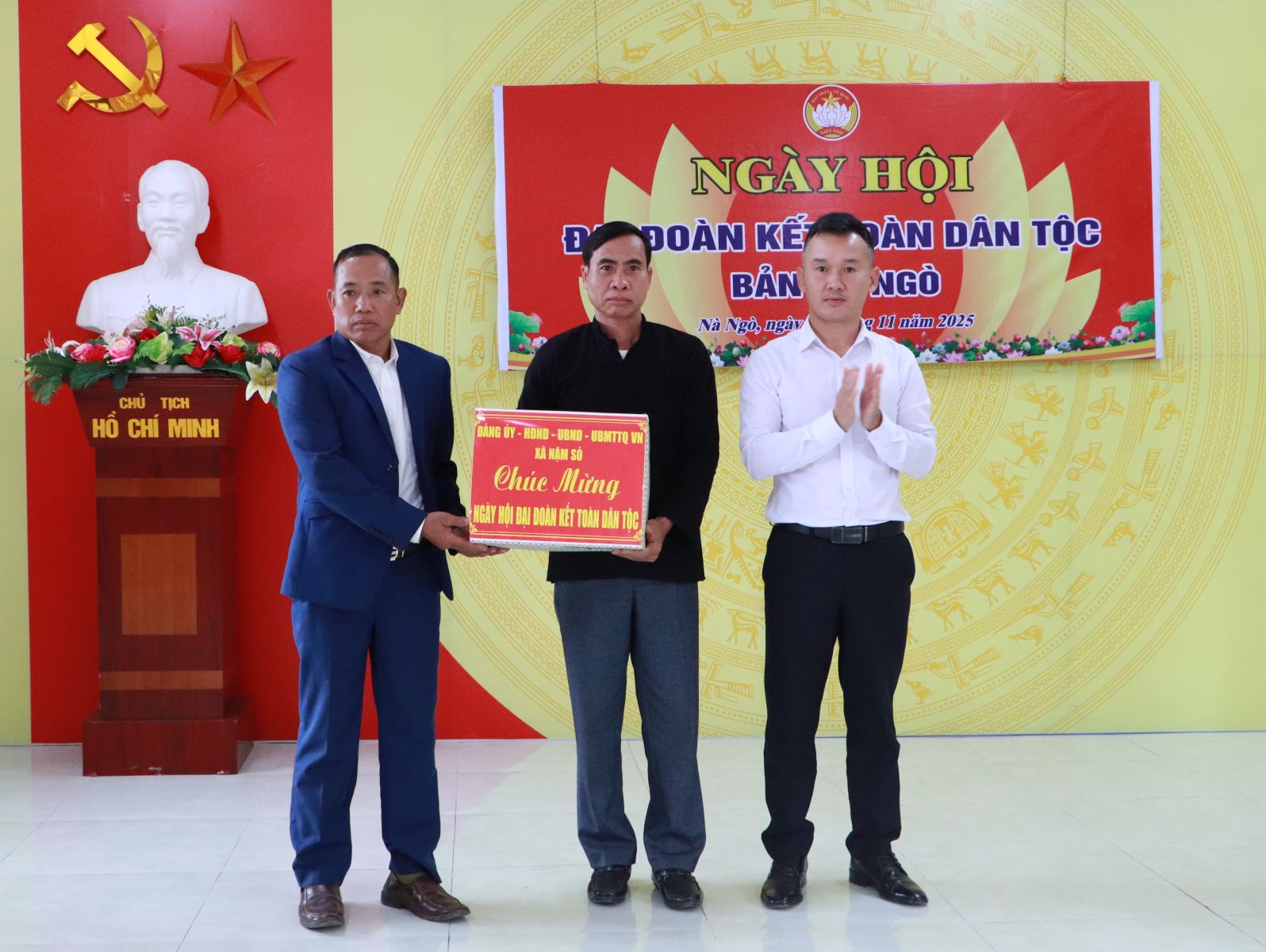 ในโอกาสนี้ สหายห่าจ่องไห่ รองประธานคณะกรรมการประชาชนจังหวัด และตัวแทนจากคณะกรรมการพรรค สภาประชาชน คณะกรรมการประชาชน และคณะกรรมการแนวร่วมปิตุภูมิเวียดนามประจำตำบลนามโซ ได้มอบของขวัญให้แก่ชาวบ้านนาโง โดยมีชาวบ้าน 10 ครัวเรือนที่มีผลงานด้านการสร้างชุมชนได้รับของขวัญเชิดชูเกียรติจากหมู่บ้าน พร้อมกันนี้ คณะกรรมการแนวร่วมปิตุภูมิเวียดนามประจำตำบลได้ริเริ่มโครงการเลียนแบบในปี พ.ศ. 2568 โดยหัวหน้าคณะกรรมการแนวร่วมประจำหมู่บ้านได้ลงนามในข้อตกลงการดำเนินงาน