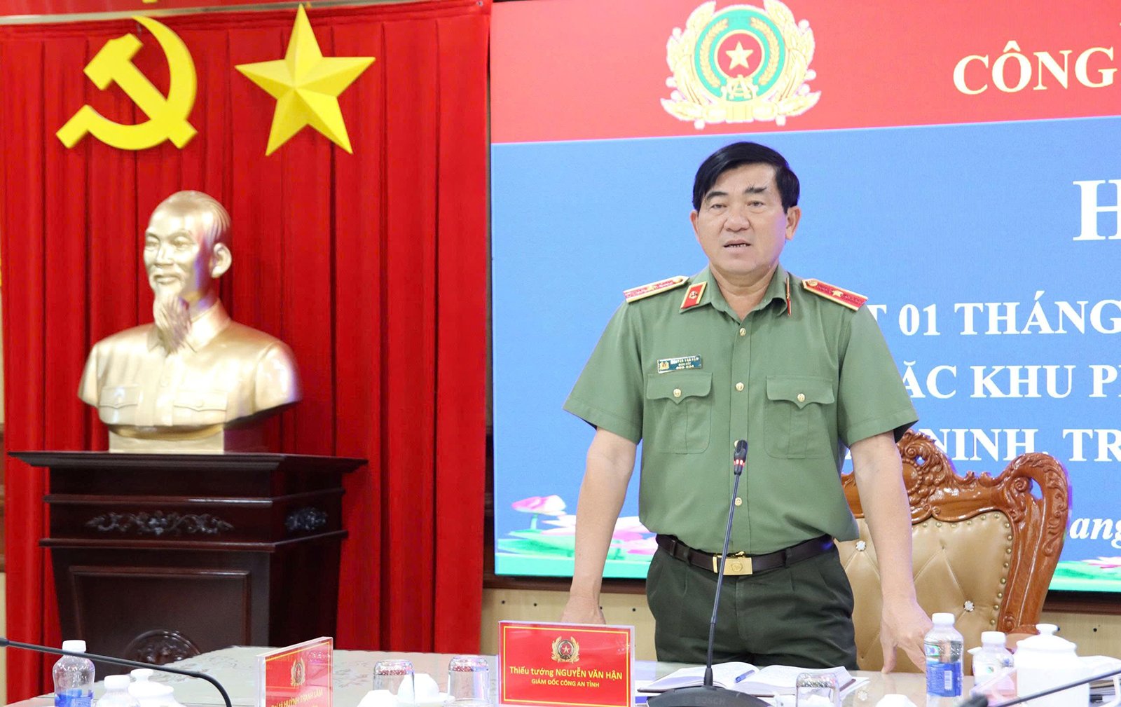 พลตรีเหงียน วัน ฮาน กรรมการคณะกรรมการประจำพรรคจังหวัด ผู้กำกับการกรมตำรวจจังหวัด กล่าวสุนทรพจน์สรุปในการประชุม
