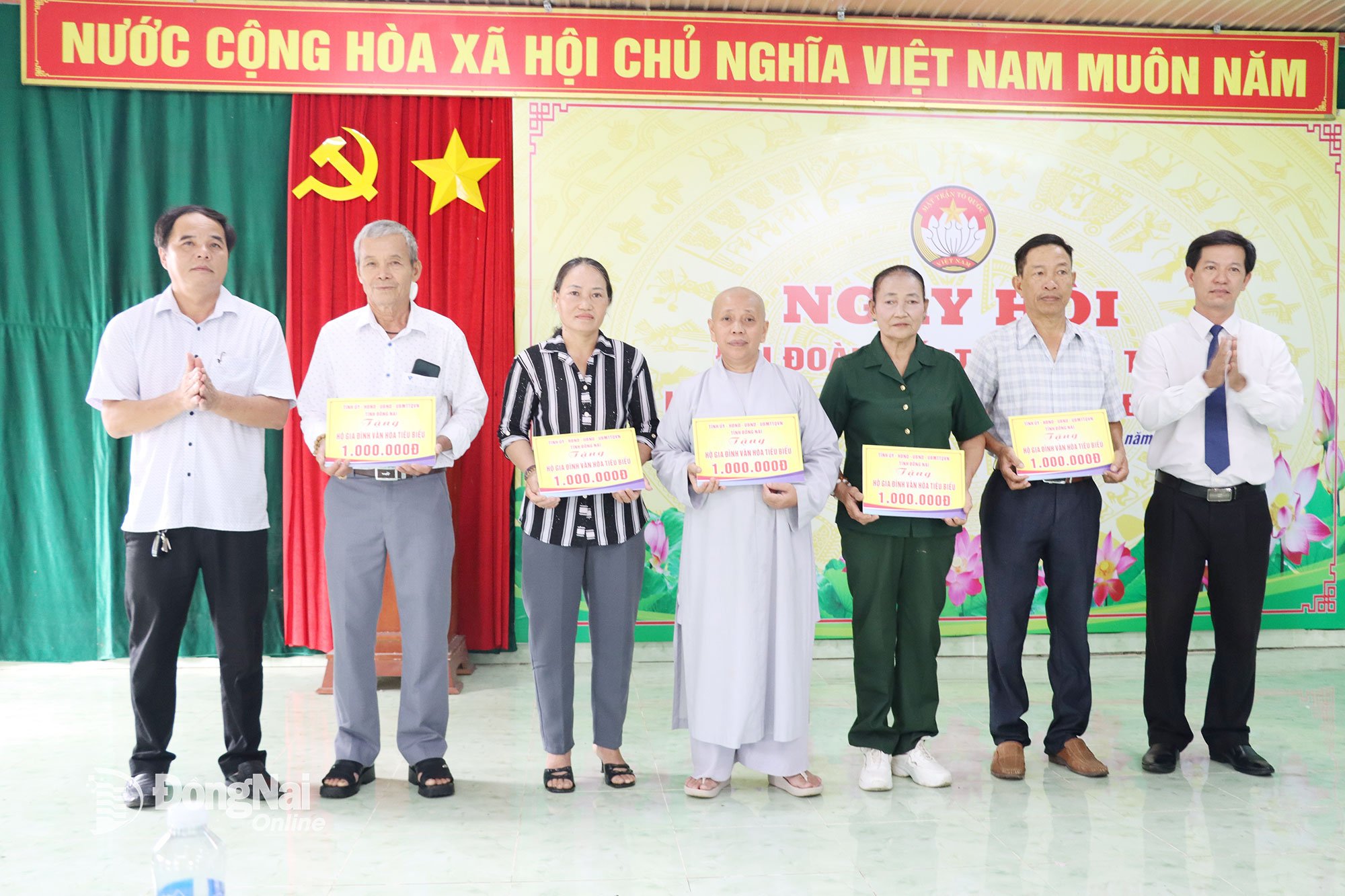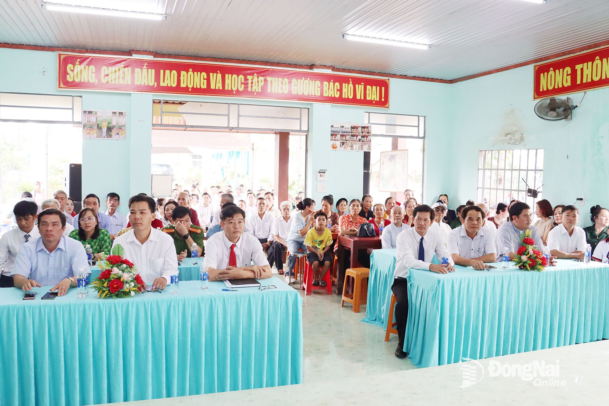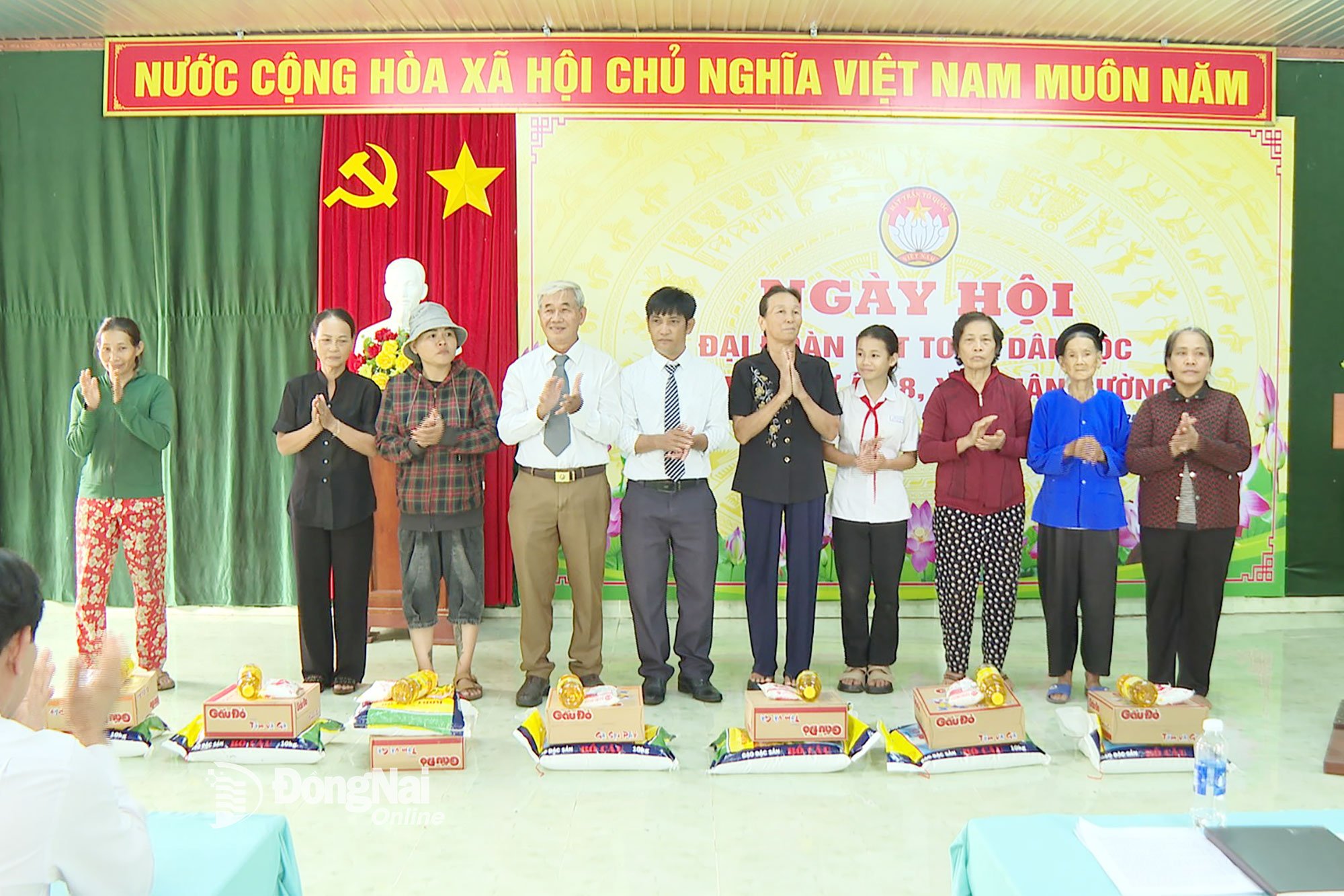 | ผู้นำตำบลซวนเดืองได้มอบโล่ประกาศเกียรติคุณและโล่รางวัลจากคณะกรรมการพรรคประจำจังหวัด - สภาประชาชน - คณะกรรมการประชาชน - คณะกรรมการแนวร่วมปิตุภูมิเวียดนาม จังหวัด ด่งนาย ให้แก่ชุมชนที่อยู่อาศัยทางวัฒนธรรมอันเป็นเอกลักษณ์ ภาพโดย: วัน ดวน |