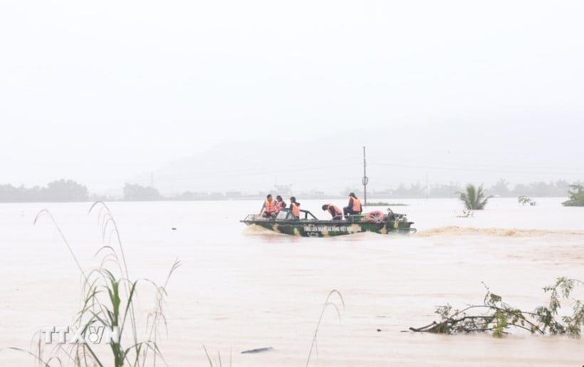 น้ำท่วมทำให้หลายพื้นที่ในจังหวัด คั๊ญฮหว่า ถูกตัดขาด (ภาพ: Xuan Trieu/VNA)