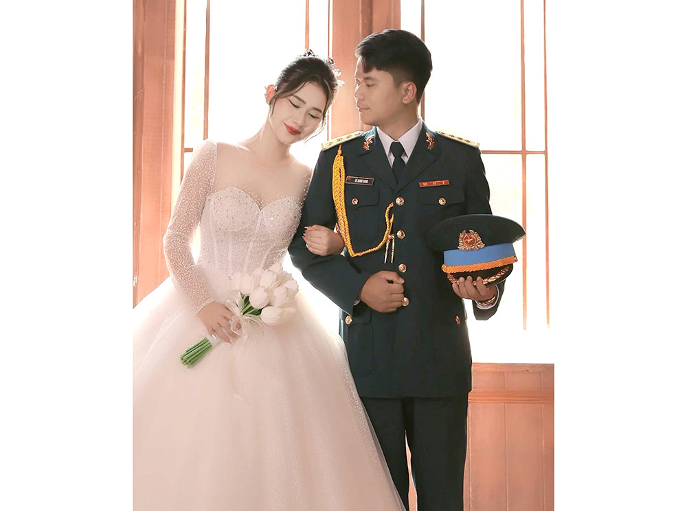 น้ำเสียงของเขาอบอุ่น ดวงตาของเขาเป็นประกายด้วยอารมณ์เมื่อเขาพูดถึงภรรยาสาวของเขา คุณเล ถิ ซวน นุง เจ้าหน้าที่เช็คอินผู้โดยสารที่สนามบินกามรานห์ ( คานห์ฮวา ) เรื่องราวความรักของพวกเขาเริ่มต้นจากการพบกันโดยบังเอิญระหว่างเจ้าหน้าที่รักษาความปลอดภัยบนชายฝั่งและพนักงานต้อนรับบนเครื่องบินจากดาลัต จากนั้นก็ค่อยๆ พัฒนาไปทีละน้อย กลายเป็นความกลมกลืนที่อ่อนโยนท่ามกลางท้องฟ้าแจ่มใสและลมแรงของกามรานห์