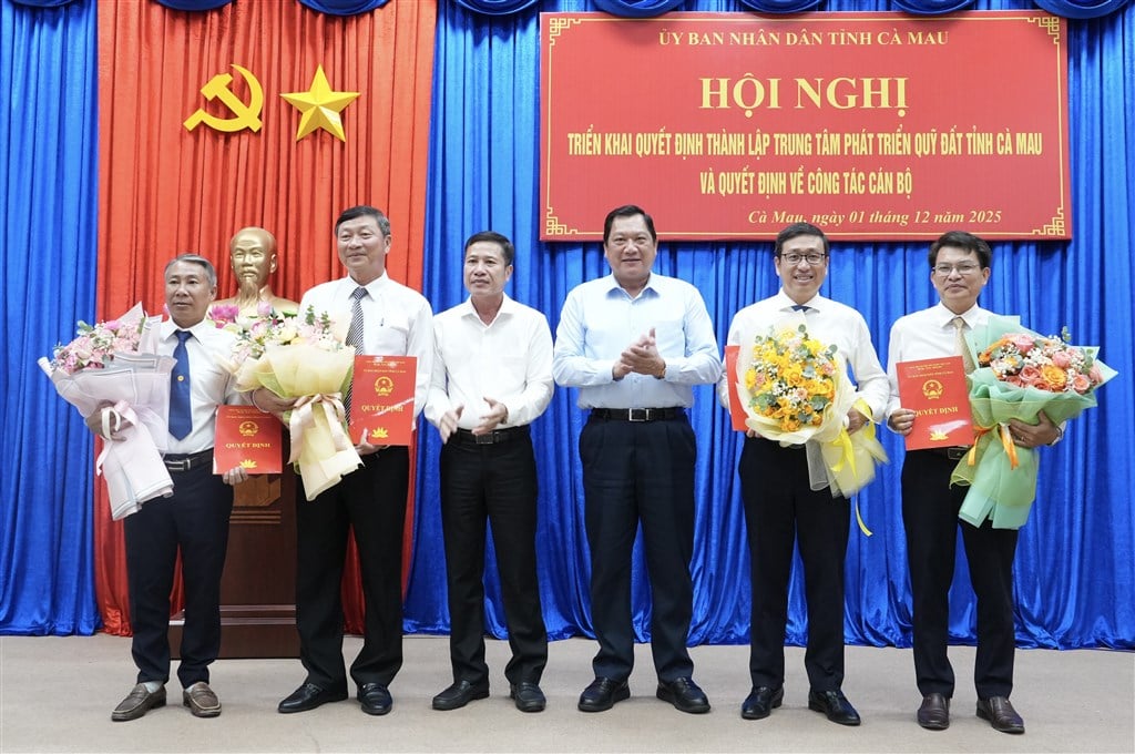 นอกจากนี้ ที่ประชุมยังได้ประกาศมติของประธานคณะกรรมการประชาชนจังหวัดเกี่ยวกับการแต่งตั้งนาย Tang Vu Em ผู้อำนวยการศูนย์พัฒนากองทุนที่ดินจังหวัด Ca Mau ให้ดำรงตำแหน่งผู้อำนวยการศูนย์พัฒนากองทุนที่ดินจังหวัด Ca Mau หลังจากการควบรวมกิจการ และแต่งตั้งรองผู้อำนวยการ 3 ราย ได้แก่ นาย Phan Thanh Ha รักษาการผู้อำนวยการศูนย์พัฒนากองทุนที่ดินจังหวัด Bac Lieu นาย Nguyen Chi Nhan และนาย Le Quoc Thinh รองผู้อำนวยการศูนย์พัฒนากองทุนที่ดินจังหวัด Ca Mau