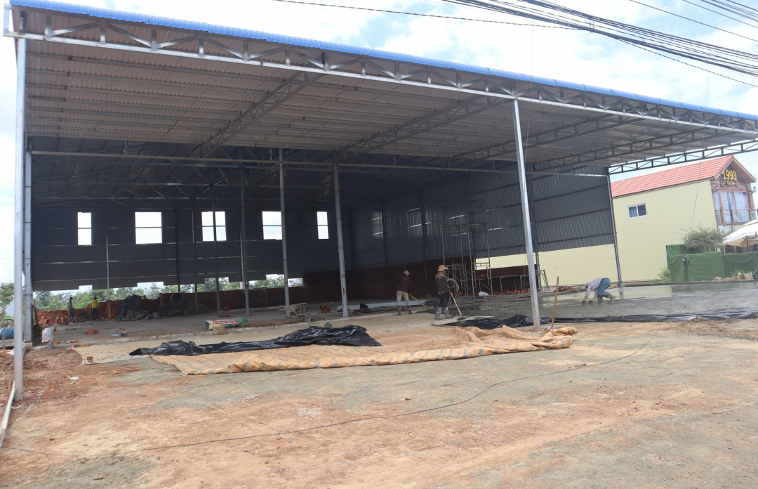 โกดังเก็บทุเรียนที่กำลังก่อสร้างในตำบลเอียเกน ฝ่าฝืนคำสั่งก่อสร้างและถูกคณะกรรมการประชาชนอำเภอครองปาก |