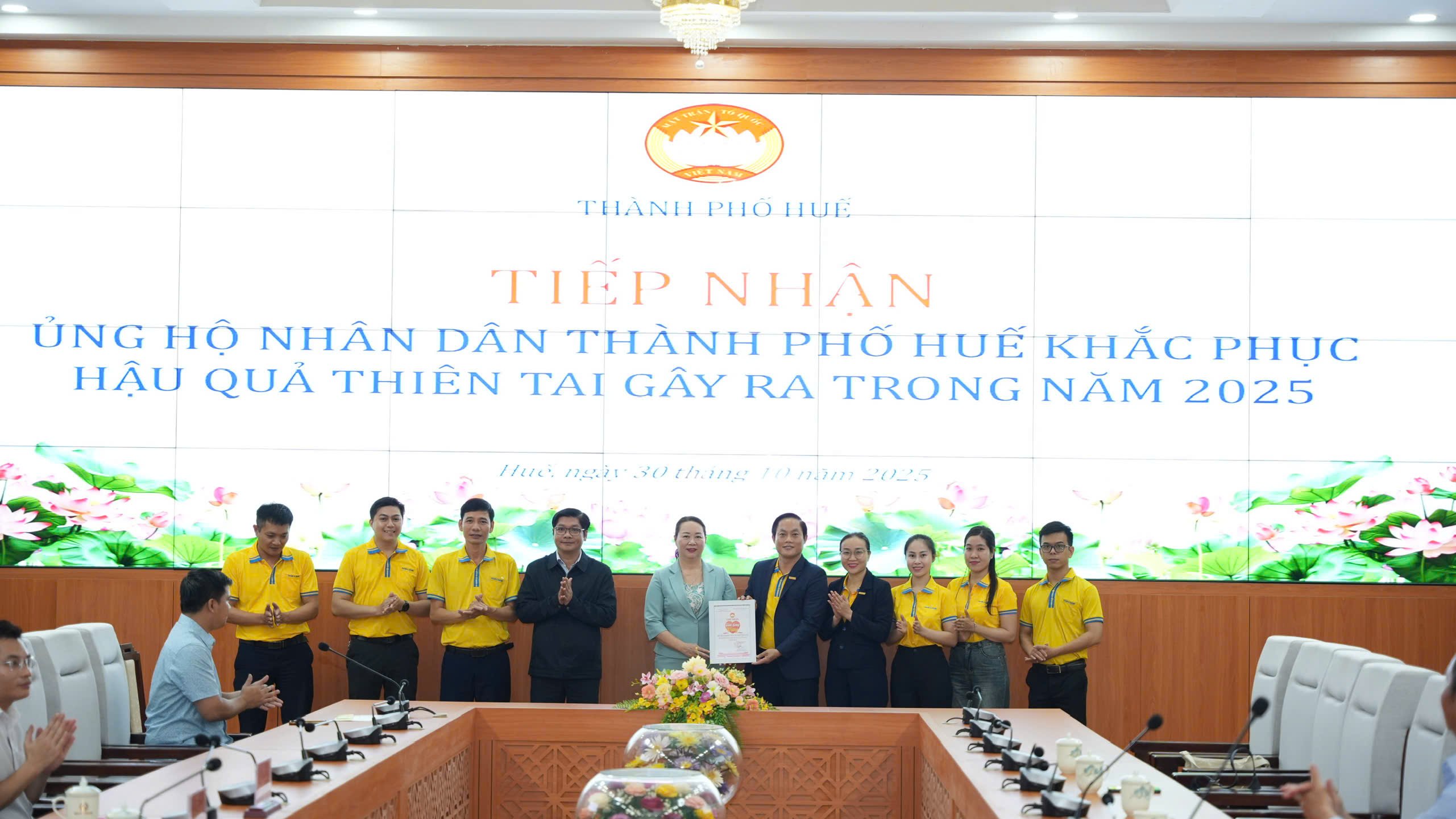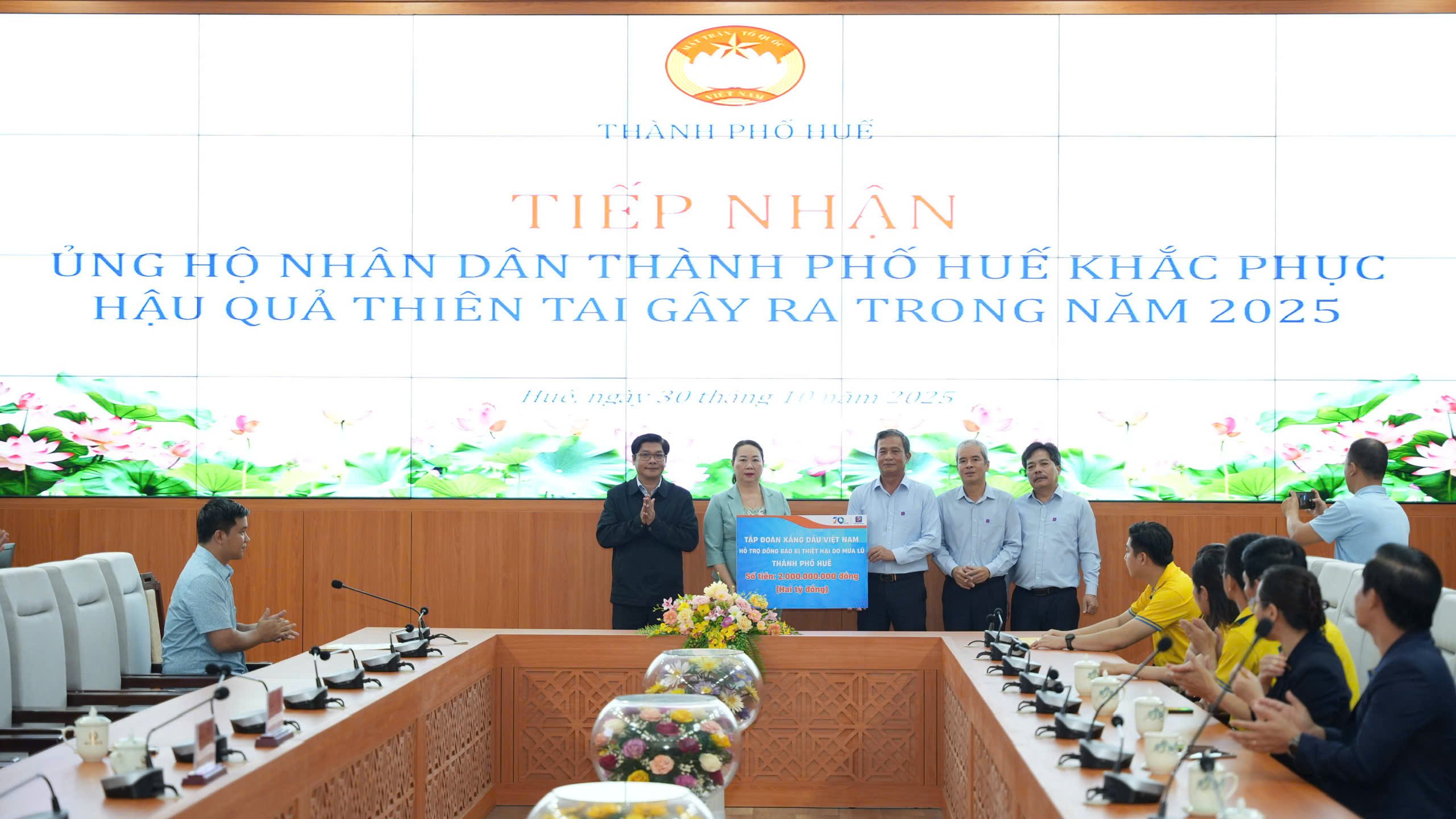 Đại diện các cơ quan, đơn vị, doanh nghiệp và các tổ chức bày tỏ sự cảm thông sâu sắc và chia sẻ trước những thiệt hại nặng nề mà người dân TP. Huế phải gánh chịu do thiên tai. Với tinh thần phát huy truyền thống đoàn kết, tương thân tương ái của dân tộc, góp phần chia sẻ giúp đồng bào khắc phục hậu quả do thiên tai, Tập đoàn Xăng dầu Việt Nam hỗ trợ 2 tỷ đồng; Ngân hàng TMCP Nam Á chi nhánh Huế hỗ trợ 300 triệu đồng.