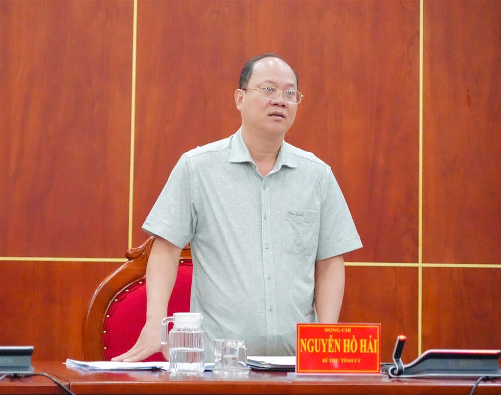 Bí thư Tỉnh ủy Nguyễn Hồ Hải phát biểu tại cuộc họp.