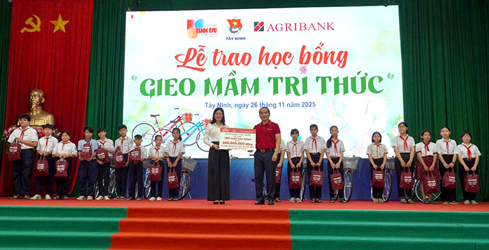2025 yılında Dong Thap, Vinh Long, Thanh Hoa ve Tay Ninh eyaletlerinde zor durumda olan 800 yoksul öğrenciye, Agribank Phu Nhuan Şubesi tarafından desteklenen toplam değeri 1,6 milyar VND olan "Bilgi Tohumları Ekmek" bursu verilecek.