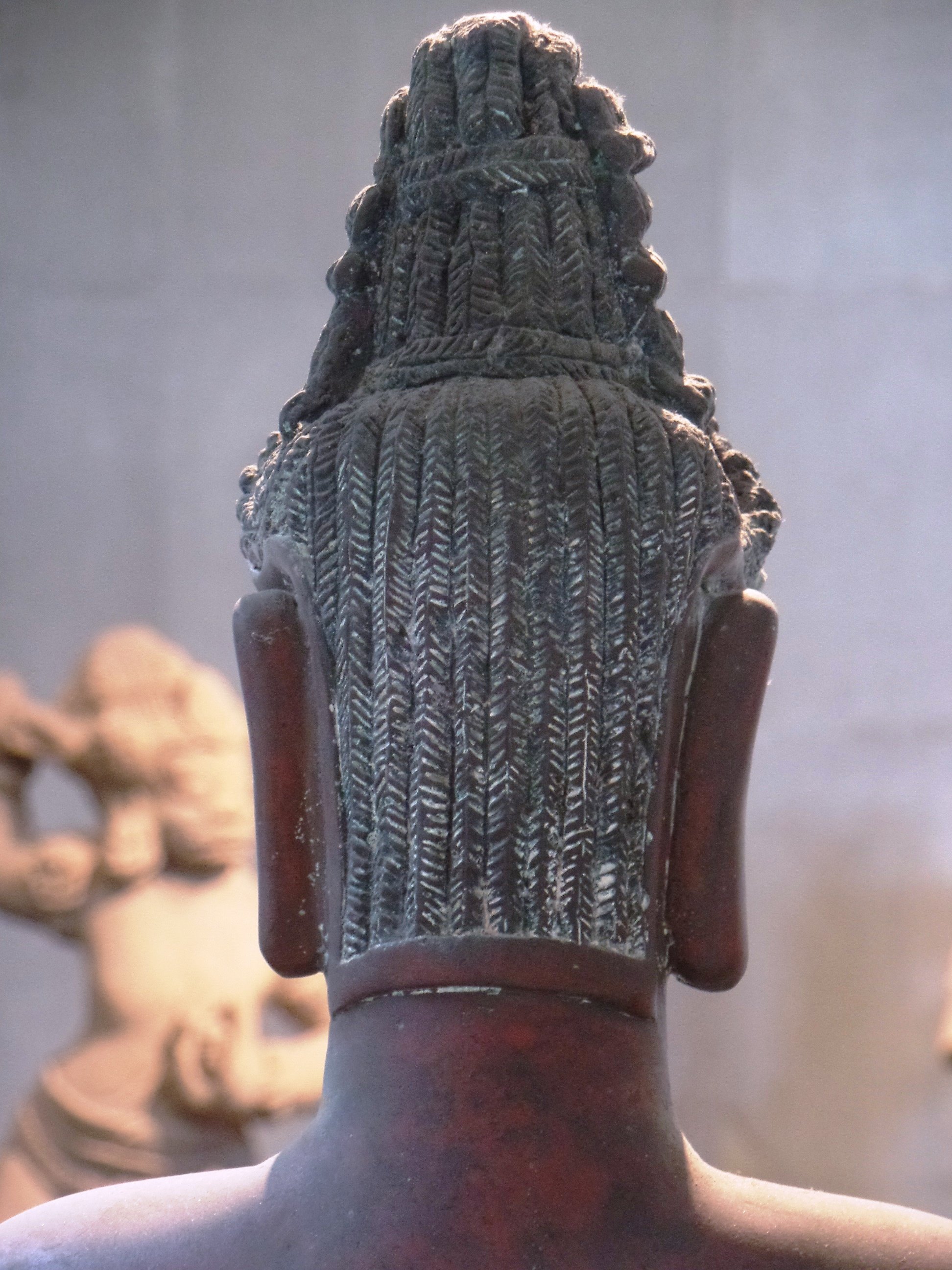 Yazar Phan Thi Thu Binh, araştırmasında heykelin alnının ön kısmına, Mahayana Budizmi Bodhisattvalarına özgü, derin, içbükey bir elmas şekli olan bilgelik gözü (Urna) oyulmuş olduğunu ve daha önce değerli taşlarla bezendiğini belirtti. İki kaş da, burun köprüsünden birbirine bağlanan derin bir şekilde oyulmuş ve bir zamanlar kesinlikle ışıltılı altınla işlenmişti...