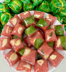 Guava yapraklarıyla kaplı diğer bazı börek çeşitlerinin aksine, Lai Vung börekleri doğrudan vông veya yıldız bektaşi üzümü yapraklarıyla sarılır. Bunlar, etin hızla fermente olmasına ve yenildiğinde lezzetli bir tat oluşturmasına yardımcı olan iki yaprak türüdür.