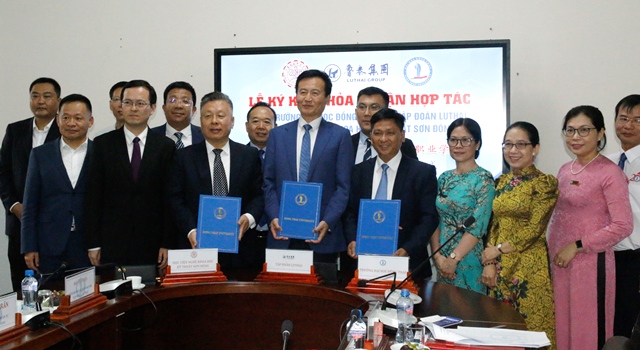 Toplantıda daha detaylı bilgi paylaşımının ardından okul ile işletme arasında 3 taraflı stratejik işbirliği anlaşması imzalandı: Dong Thap Üniversitesi (Vietnam), LuThai Grubu, Shandong Mesleki Bilim ve Teknoloji Akademisi (Çin).