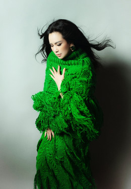 Diva Thanh Lam, Vu Ngoc ve Son ikilisinin tasarımlarını sergilerken çekici karizmasını ve zamansız güzelliğini güvenle sergiliyor.