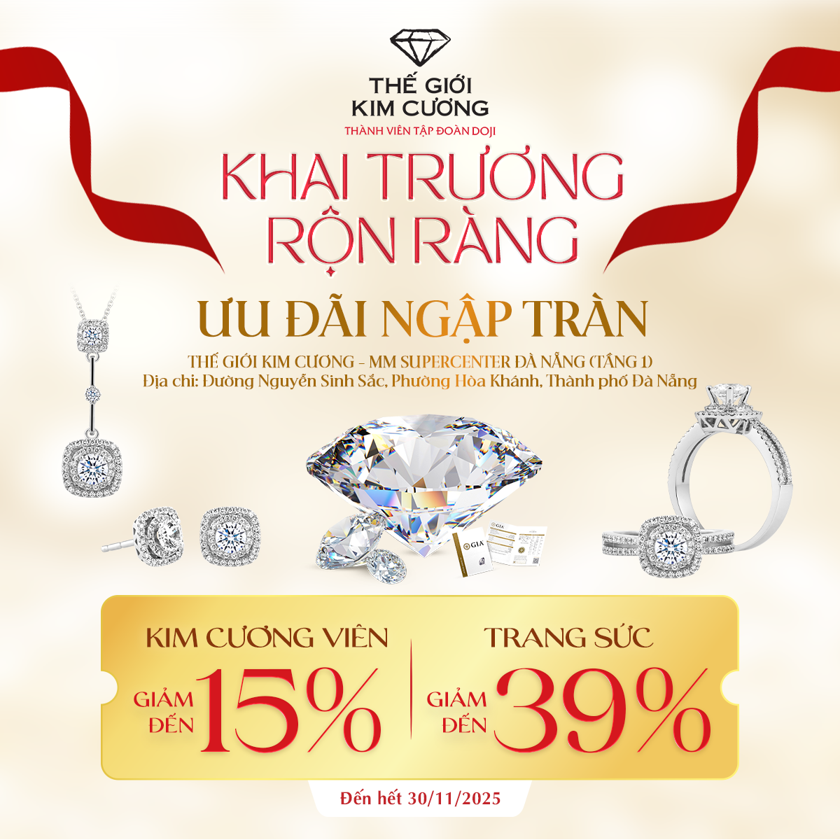 DOJI Grubunun bir üyesi olan Diamond World, 17 Kasım'da Da Nang Şehri, Hoa Khanh Mahallesi, Nguyen Sinh Sac Caddesi, No. 167, MM Supercenter'ın 1. Katında yeni bir mağazayı resmen açtı.