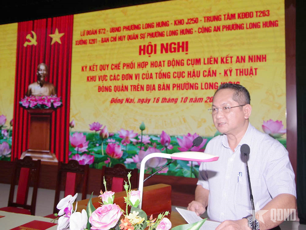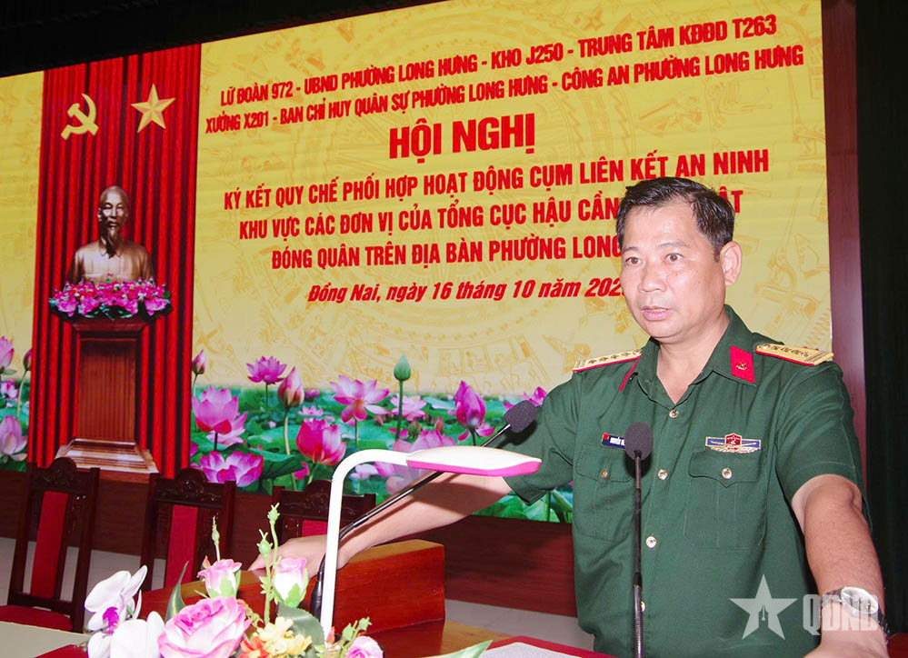 Konferansta Albay Nguyen Van Thai, Lojistik ve Teknoloji Genel Dairesi'ne bağlı bölgede konuşlu birimler ile Long Hung bölgesindeki Parti Komitesi, hükümet ve halk arasında ordu ve halk dayanışmasını gösteren imza konferansının önemini ve önemli rolünü vurguladı ve güçlü bir halk yüreği konumunun inşasına katkıda bulundu.