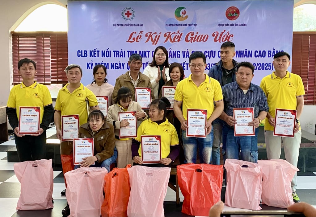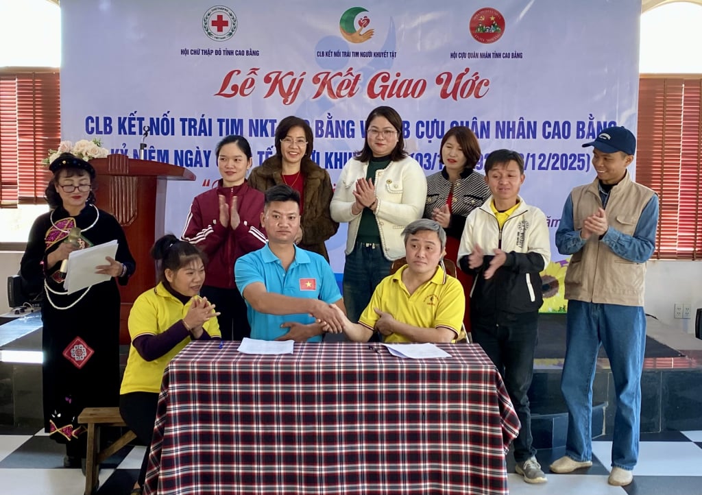 Cao Bang Engelliler Kalp Bağlantı Kulübü, Temmuz 2023'te İl Kızılhaç Derneği bünyesinde kurulmuş olup, şu anda 31 üyesi ve 8 gönüllüsü bulunmaktadır. Kulüp, engelli bireylerin meşru hak ve çıkarlarını bir araya getirmek, desteklemek ve korumak; kapasite geliştirme, mesleki eğitim, istihdam yaratma, maddi ve manevi yaşamlarını iyileştirme ve sosyal faaliyetlere aktif katılımlarını desteklemek amacıyla kurulmuştur. Böylece, engelli bireylerin meşru hak ve çıkarlarının korunmasına katkıda bulunarak, engelli bireylerin zorlukların üstesinden gelmeleri, hayatta yükselmeleri ve aileleri ve toplum üzerindeki yükü azaltmaları için motivasyon sağlamaktadır.