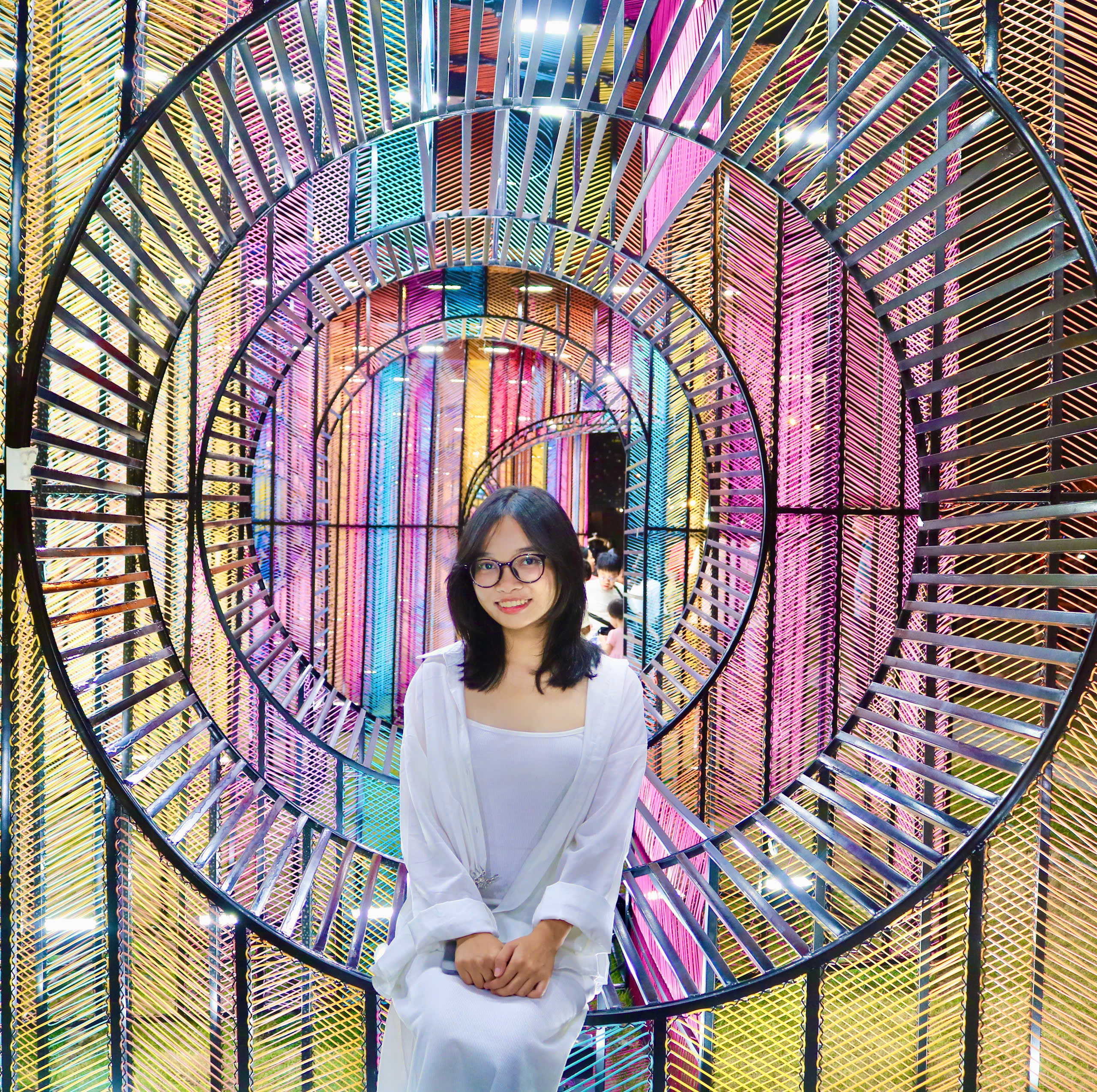 Trafik sıkışıklığı nedeniyle buraya ulaşmamız neredeyse bir saat sürdü, ancak Ho Chi Minh şehrinde yaşayan Bayan Kim Lien (35 yaşında), ışıl ışıl parka baktığında hâlâ memnun görünüyordu. "Yol çok kalabalık, bu yüzden yürümek uzun sürüyor, ama karşılığında buradaki alan güzel ve ferah. Bu parlayan blokları oldukça özgün ve ilginç buluyorum. Burada insanlar oturup serin esintinin tadını çıkarıyor, çok neşeli," diye paylaştı Bayan Lien.