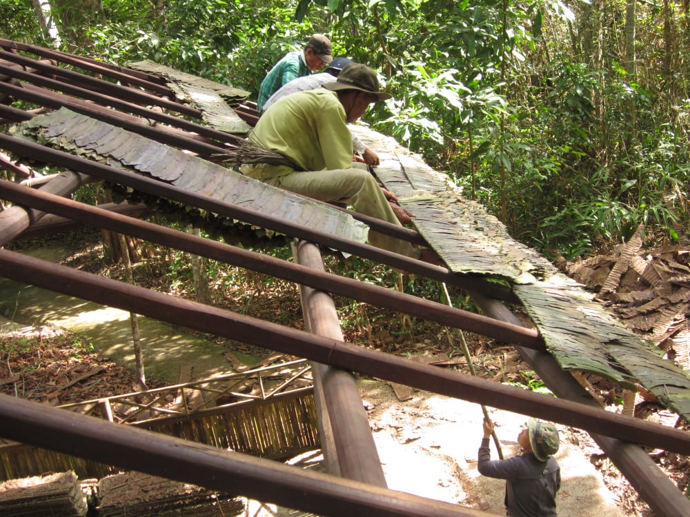 O dönemde Chang Riec Ormanı, devrimi koruyan sağlam bir "kalkan" gibiydi. Ağaçların iç içe geçmiş gölgeliği evleri, tünelleri, koridorları, Hoang Cam mutfağını vb. kaplıyordu. Buradaki sayısız orman ağacı arasında, üssün sembolü haline gelen bir yaprak türü vardı: Trung Quan yaprağı. Yavaşça çürümesi, zor alev alması, yandığında yayılmaması ve bombalandığında veya topçu ateşiyle ateşin yayılmasını sınırlaması özellikleri sayesinde Trung Quan yaprağı, üssün içindeki evlerin, koridorların, mutfakların vb. çatıları için "altın malzeme" haline geldi. Trung Quan yaprağından yapılmış çatının altında, yoldaşlar Nguyen Van Linh, Nguyen Chi Thanh, Pham Hung, Vo Van Kiet vb. ile ilgili hâlâ bozulmamış hatıralar vardı. Temiz bir masa, zamanın izlerini taşıyan bir evrak dolabı, eski bambu çubuklarından yapılmış küçük bir yatak vb. vardı. Hepsi sade ve sadeydi, ancak Güney'in kaderini omuzlayanların vatansever ruhuyla doluydu.