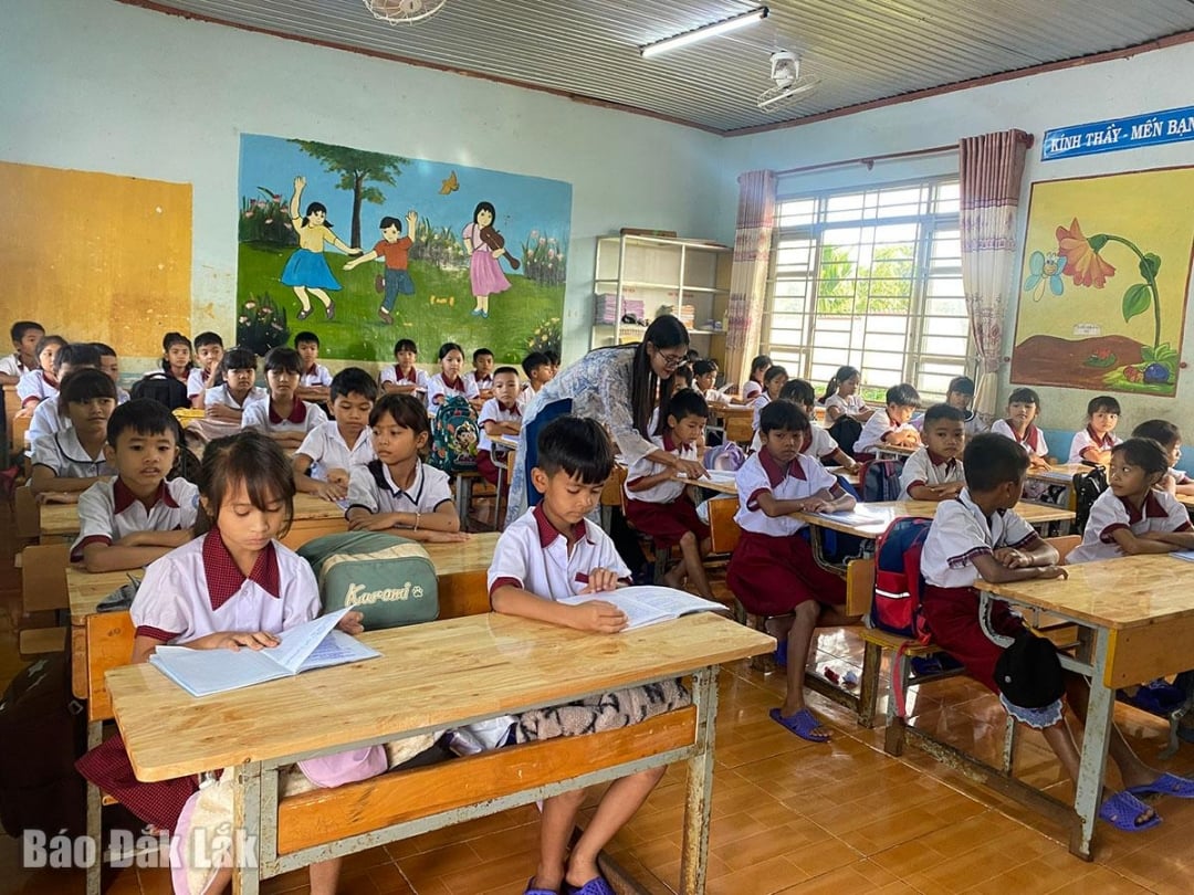 Özellikle, okul uzun yıllardır köy muhtarı ve köydeki saygın kişilerle yakın işbirliği içinde çalışarak öğrencileri çok çalışmaları konusunda teşvik ediyor, harekete geçiriyor ve teşvik ediyor. Kroa C köyündeki 4C sınıfı öğrencisi Y Thin Eban ve 3C sınıfı öğrencisi Y Nghinh Eban adlı iki kardeşin durumu buna tipik bir örnektir. Ebeveynleri çalışıyor ve zorlu ailevi koşullar nedeniyle okulu bırakmak zorunda kalacakları zamanlar oluyordu. Çocukların durumunu anlayan öğretmenler, her zaman onlara yakın durarak onları okumaya teşvik ediyor; bursları desteklemek için hayırseverlerle bağlantı kuruyor; aynı zamanda Kroa C köy muhtarı Bay Y Ngoan Eban ve köydeki saygın bir kişi olan Bay Y Ui Adrong ile işbirliği yaparak çocukları okula ve derse gitmeleri için hemen ziyaret ediyor ve teşvik ediyorlar. Öğretmenlerin ve köy Özyönetim Kurulu'nun ilgisi, Y Thin kardeşlerin mutlu ve özgüvenli bir şekilde okula gitmelerine yardımcı oldu.
