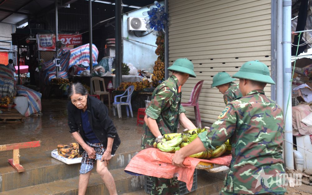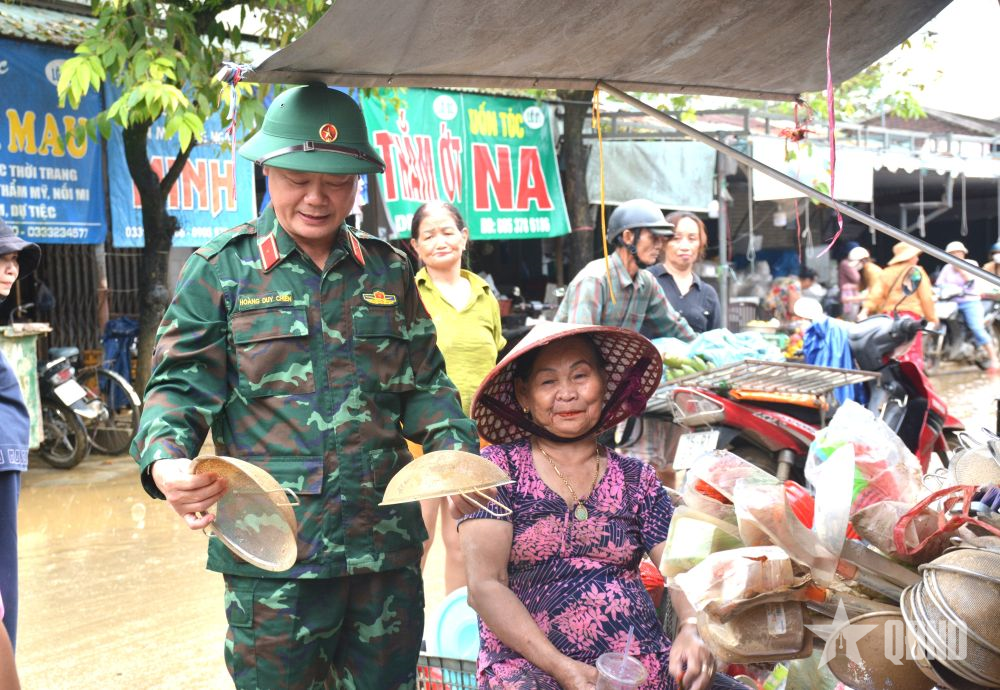 Dong Ba Pazar Yönetim Kurulu Başkanı Bayan Bui Thi Thu Hang şunları söyledi: "Pazarın tamamı bir metre derinliğinde sular altında kaldı, esnafın tamamı etkilendi. Su çekilir çekilmez ordu gelip temizlik çalışmalarına yardım etti. Çok sorumlu, etkili ve disiplinli bir şekilde çalıştılar. Tüm esnaf duygulandı ve minnettar kaldı."