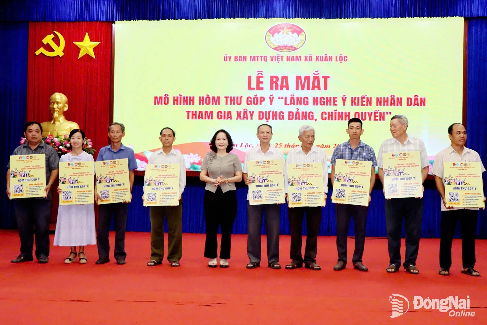 Törende ayrıca Xuan Loc komünü Vietnam Anavatan Cephesi Komitesi, "Parti ve hükümet inşasına katılım için halkın görüşlerinin dinlenmesi" konulu öneri kutusu modelini tanıttı ve komünde bulunan mezralara 31 öneri kutusu hediye etti.