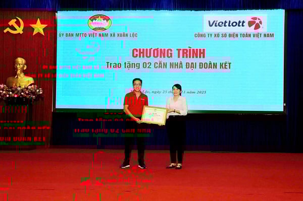 Vietnam Bilgisayarlı Piyango Şirketi (Vietlott), Xuan Loc komünü için 02 Büyük Dayanışma Evi'ni desteklemek amacıyla sembolik bir pano sundu.