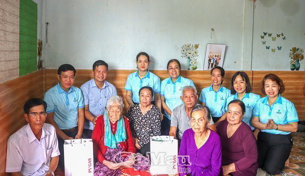 Trong khuôn khổ hoạt động “Về nguồn kết hợp An sinh xã hội tại Cà Mau năm 2025”, đoàn công tác của PV GAS cũng đến thăm Mẹ Việt Nam Anh hùng Lý Thị Lễ (sinh năm 1923, Ấp 10). Tại đây, đoàn ân cần thăm hỏi sức khỏe, bày tỏ lòng tri ân đối với những hy sinh to lớn của Mẹ trong sự nghiệp đấu tranh giải phóng dân tộc; đồng thời trao phần quà và 5 triệu đồng tiền mặt gửi tặng Mẹ.