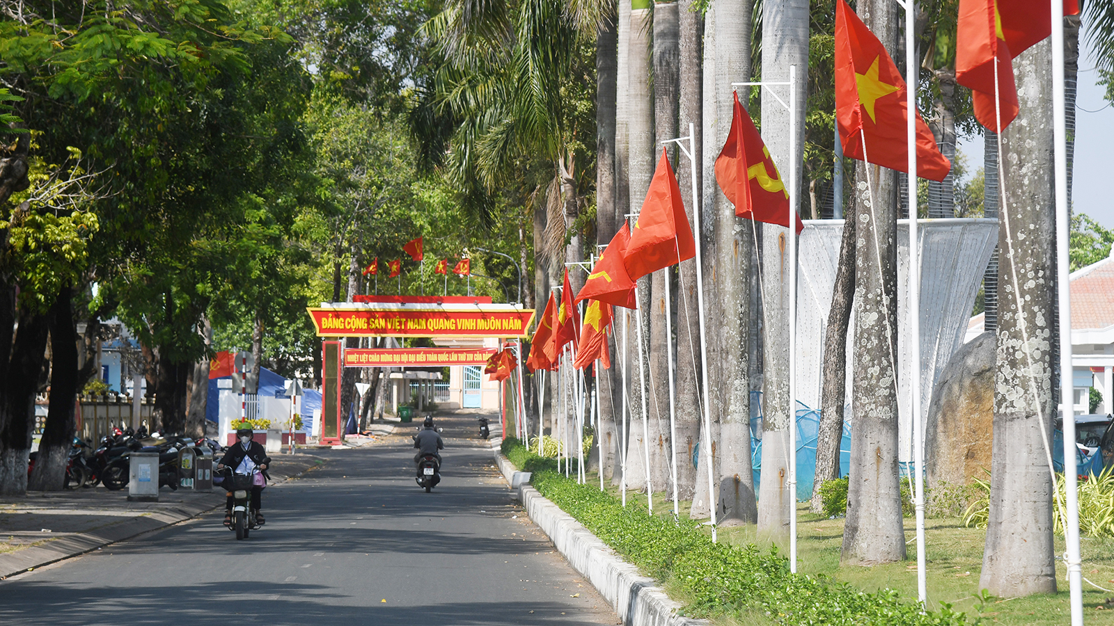 Tuyến đường trên địa bàn phường Rạch Giá được trang hoàng chào mừng Đại hội đại biểu toàn quốc lần thứ XIV của Đảng. Ảnh: THU OANH
