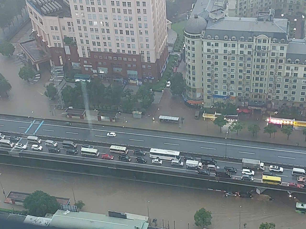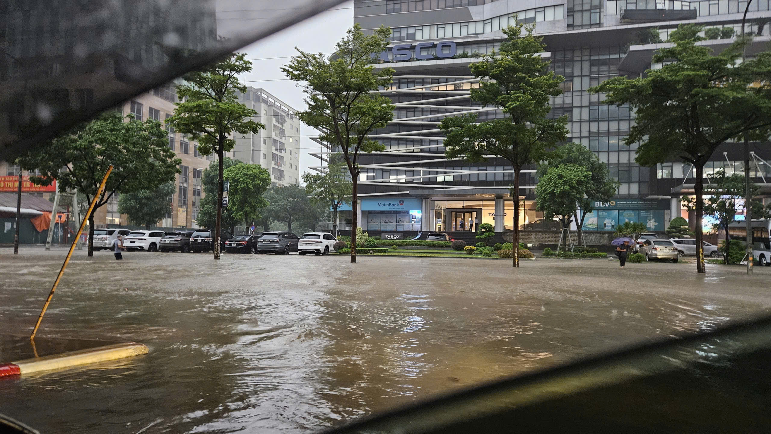 Phố Nguyễn Quý Đức nước ngập sâu, các trường học quanh địa bàn đã thông báo nghỉ học trực tiếp từ sáng sớm, chuyển sang phương án học online