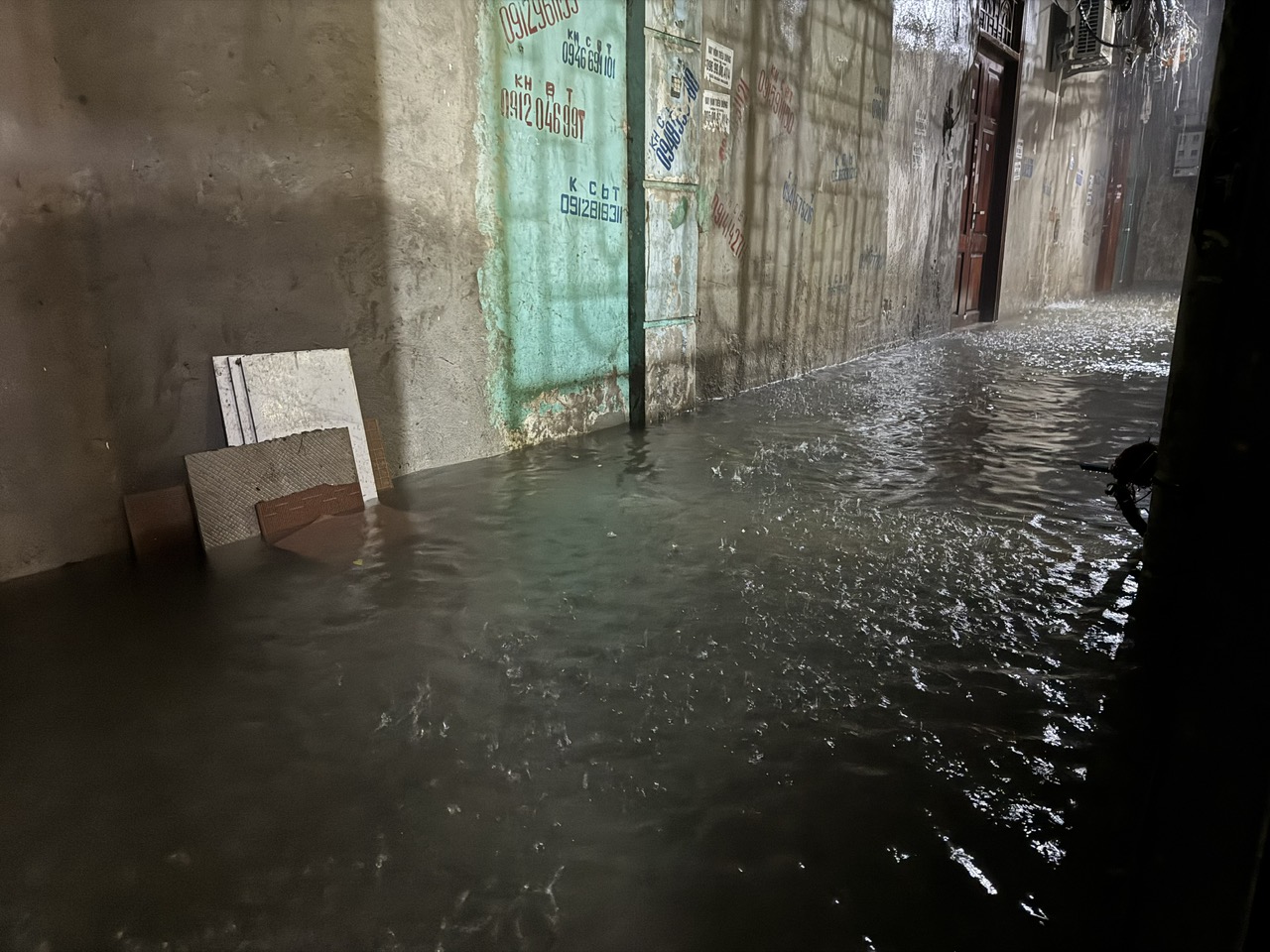Một ngõ nhỏ trên đường Trần Quốc Vượng nước đã ngập tới cửa nhà dân