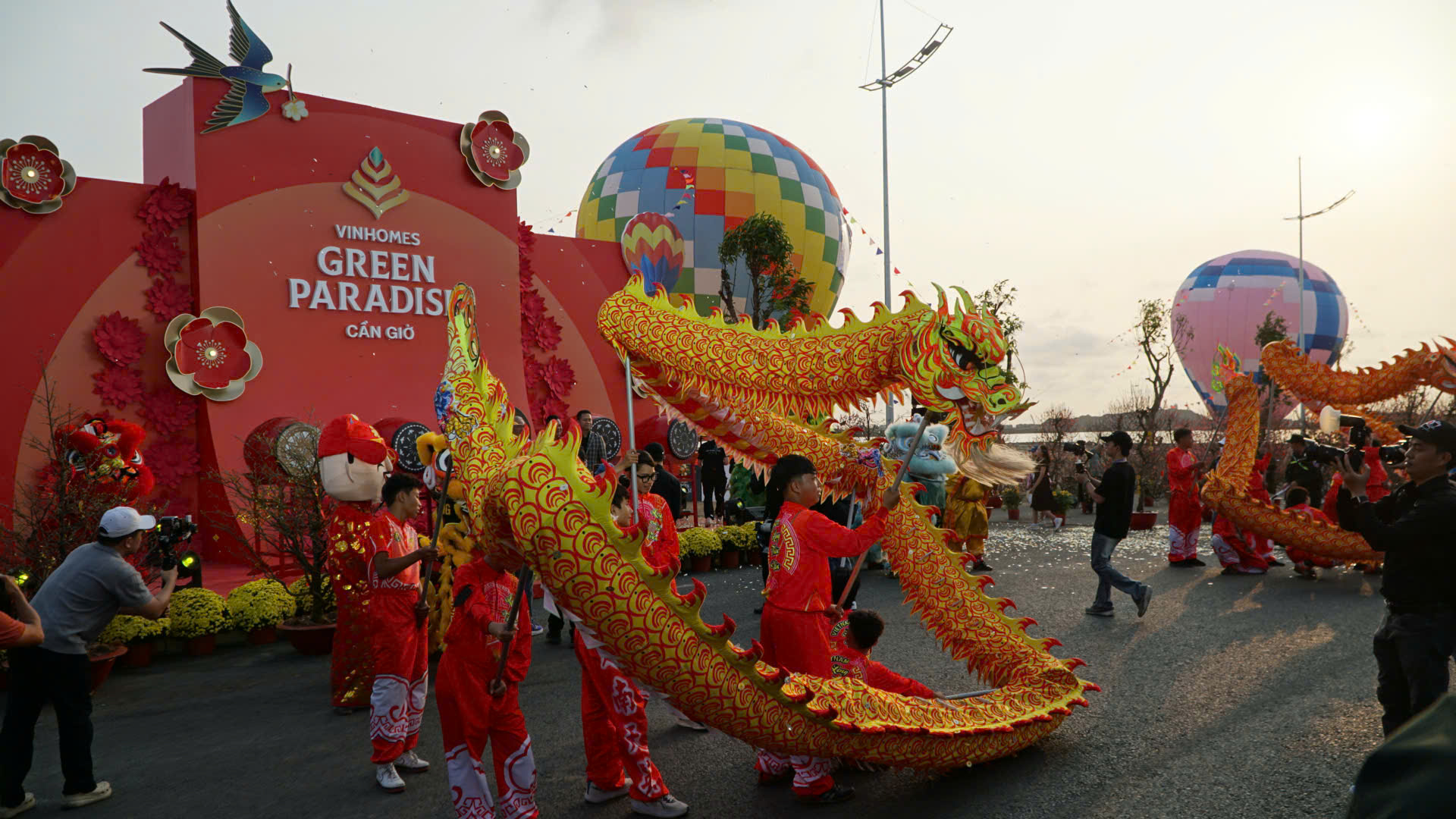 Обов'язковим місцем для відвідування відвідувачів спеціального Весняного фестивалю, що святкує нову еру розвитку в Vinhomes Green Paradise Can Gio, є фестиваль повітряних куль, перший у своєму роді під час святкування місячного Нового року. Завдяки 22 великим, барвистим повітряним кулькам відвідувачі можуть не лише зробити унікальні фотографії, святкуючи весну, але й насолодитися панорамним видом на квітучі вулиці, море та зелений рай Кан Gio згори.