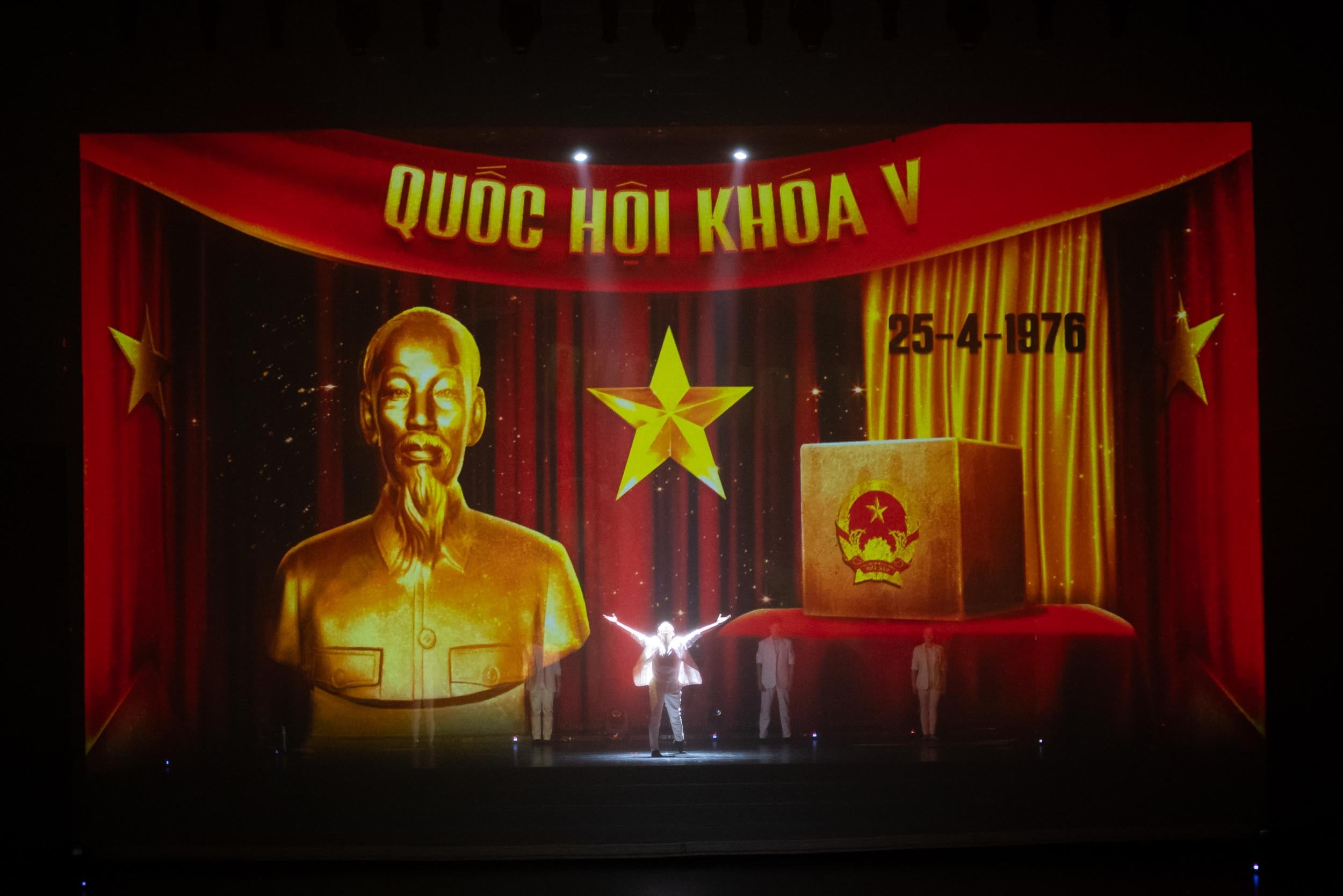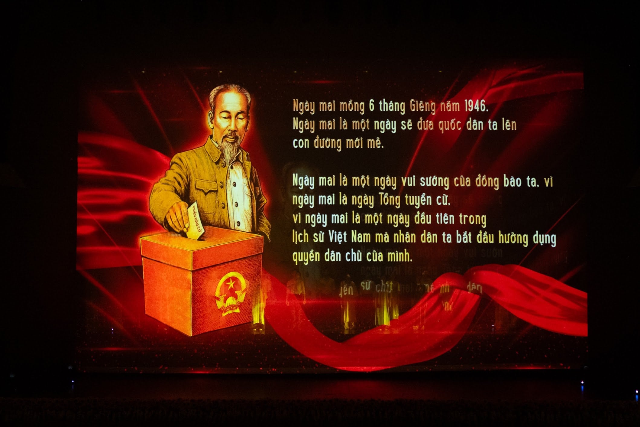 Сцена, що відтворює заклик президента Хо Ши Міна до всенародного голосування, є однією з найглибших ознак програми політичного мистецтва «Слава Національних зборів В'єтнаму».