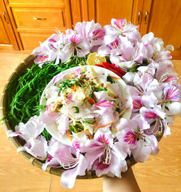 Пані Фуонг сказала, що салат з квітів баугінії простий у приготуванні, але має унікальний та чудовий смак, його легко їсти. Квіти баугінії мають натуральний солодкий, злегка терпкий смак, а пагони бамбука ретельно обробляються, щоб зменшити гіркоту та зберегти свою хрусткість та свіжість.