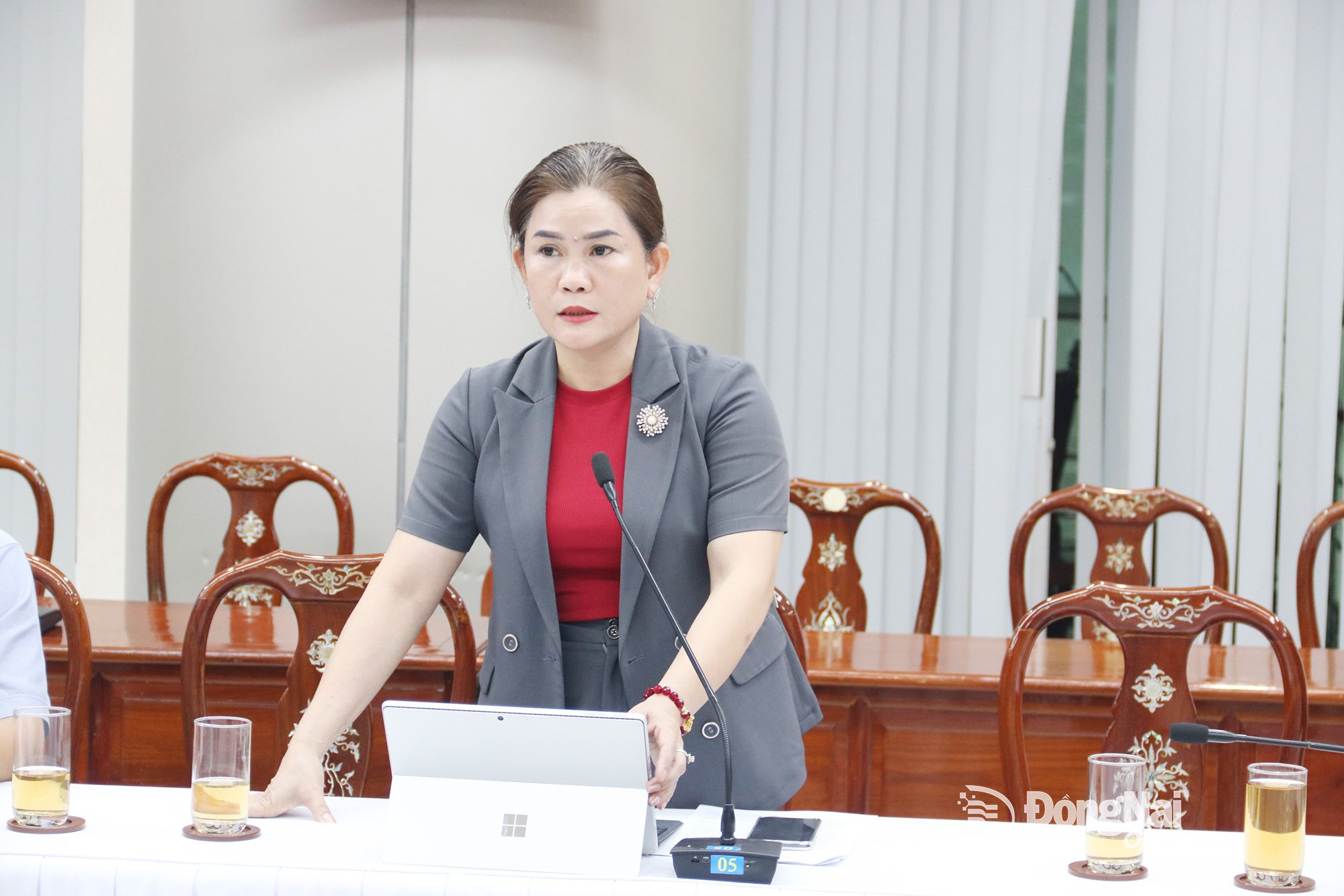 Директор Департаменту закордонних справ провінції Донгнай Хюїнь Тхі Бе Нам виступає на зустрічі. Фото: Вуонг Тхе |