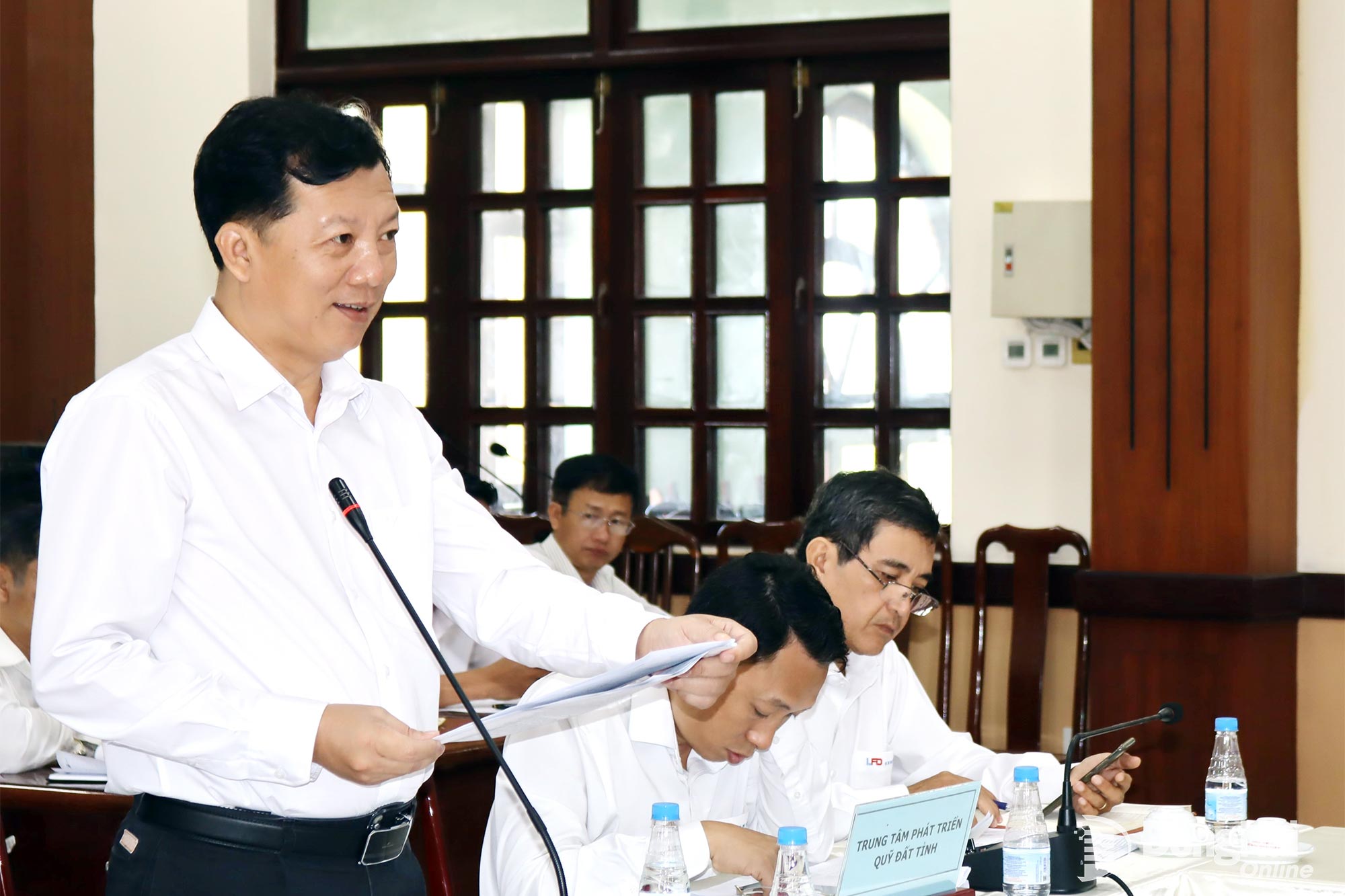 Пан Чу Тьєн Зунг, заступник директора Центру розвитку провінційного земельного фонду, доповів про компенсацію та розчищення ділянок для проектів. Фото: Хоанг Лок |