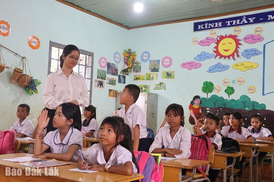 | Звичайні уроки вчителів та учнів у початковій школі Во Тхі Сау (комуна Еа Тул). |