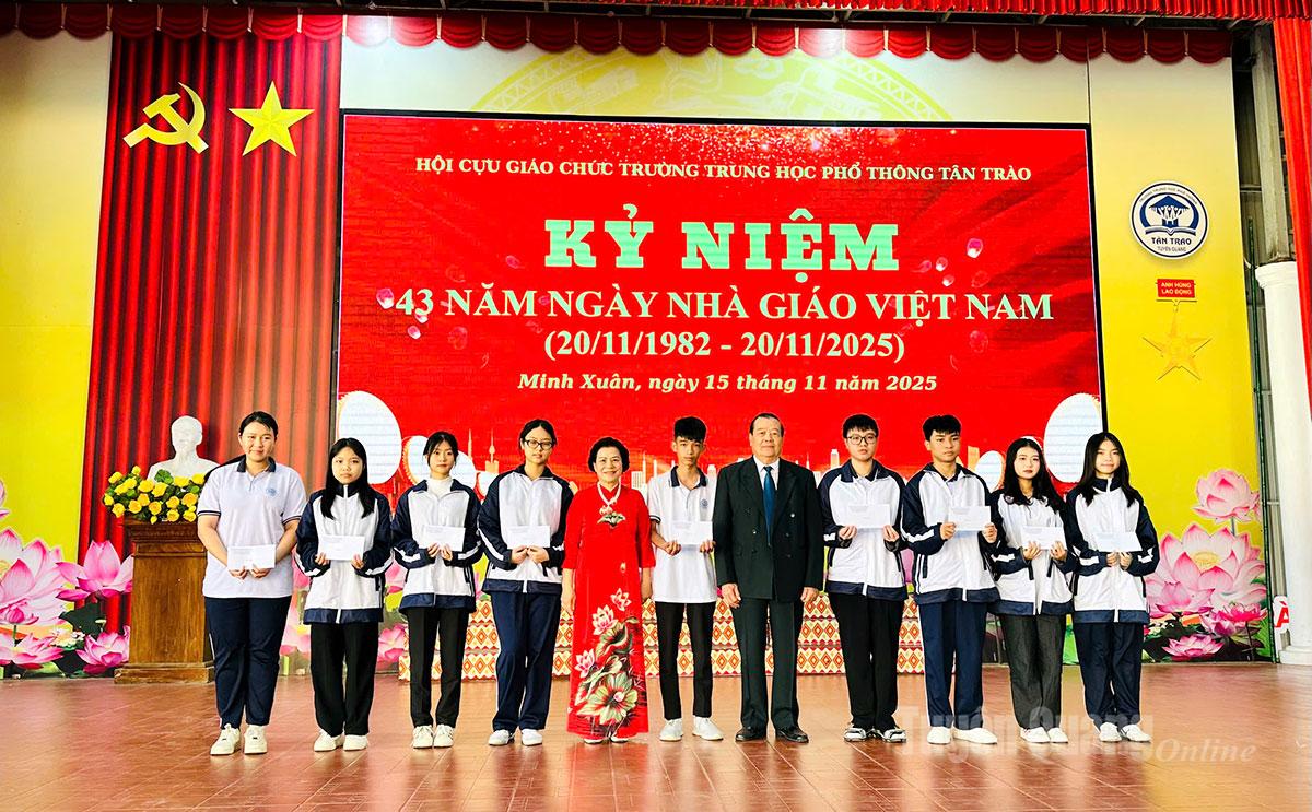 На зустрічі делегати переглянули славну традицію Дня в'єтнамського вчителя, насолодилися виступами вчителів та членів профспілки, створивши дружню та згуртовану атмосферу. Колишні вчителі обмінялися досвідом, підбадьорювали один одного в житті та домовилися про напрямок діяльності на майбутнє, продовжуючи будувати дедалі сильнішу Асоціацію. Асоціація колишніх вчителів середньої школи Тан Трао була заснована у 2011 році та зараз налічує 108 членів. Протягом багатьох років її члени завжди активно брали участь в освіті , просуванні знань та розвитку талантів; сприяючи побудові навчального суспільства, зберігаючи традиції старанності школи та місцевості.