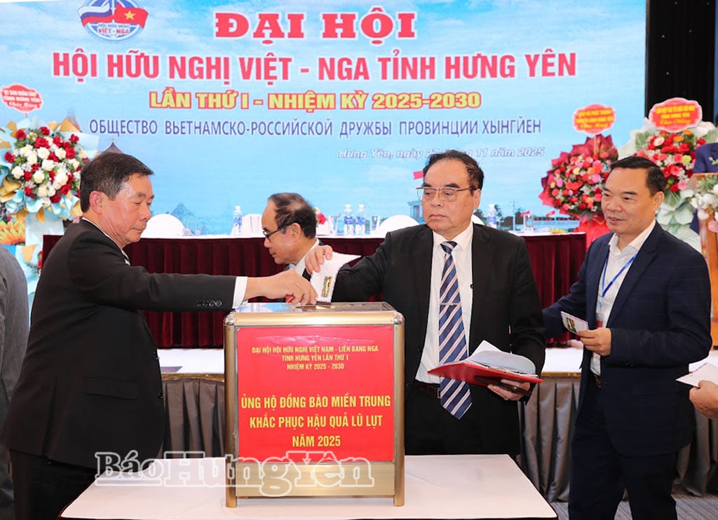 З цієї нагоди посадовці та члени Асоціації дружби В'єтнам-Росія провінції Хунг Єн взяли участь у спільній роботі з народом усієї країни, щоб допомогти мешканцям Центрального регіону подолати труднощі, спричинені штормами та повенями.