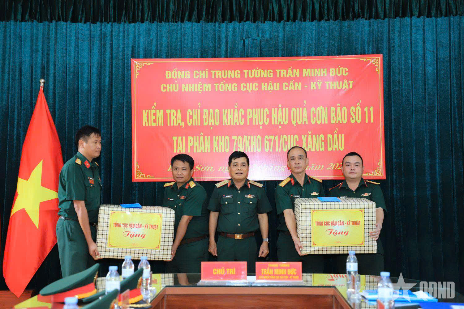 Генерал-лейтенант Чан Мінь Дик, директор Генерального департаменту логістики та технологій, керував роботами з подолання наслідків шторму № 11 на складі 79. |