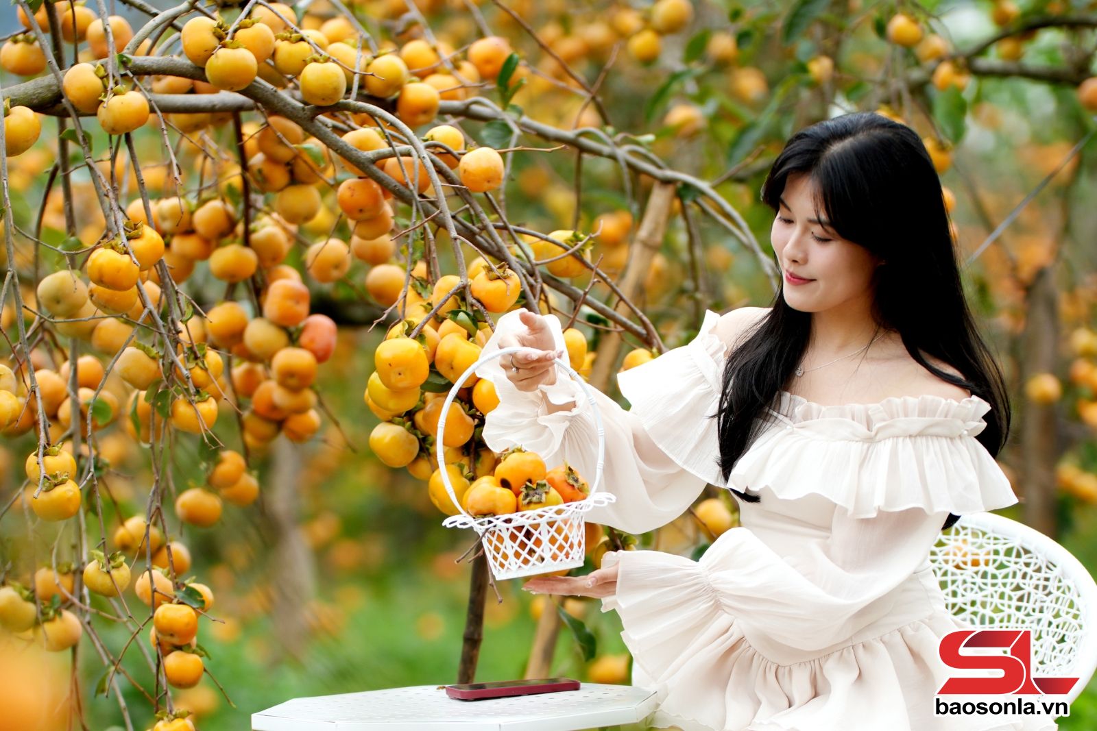 У вихідні дні дорога, що веде до садів хурми, повних стиглих плодів, у житлових групах Чо Лонг, Міа Дуонг, Па Кхен тощо в районі Тхао Нгуєн, переповнена транспортом. Туристи , особливо молодь та любителі фотографії, не проти довгої відстані, щоб зареєструватися поруч із червоними стиглими деревами хурми. Захоплена позуванням поруч із в'язкою стиглої хурми, пані Нгуєн Тху Ха, туристка з Ханоя, поділилася: «Я вперше приїхала до Мок Чау цього сезону. Відчуття стояти посеред саду хурми, повного стиглих плодів на тлі блакитного неба, справді вражає, пейзажі такі ж прекрасні, як у романтичних корейських чи японських фільмах, які я бачила. Крім того, мені також сподобалася хрустка хурма прямо в саду, її солодкий смак дуже відрізняється від купівлі в супермаркеті».