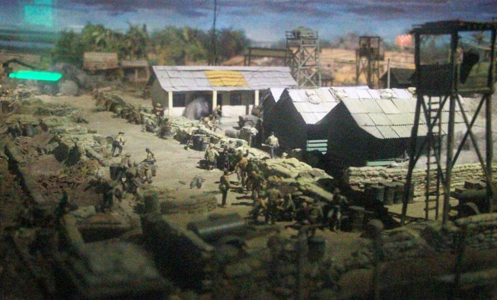 Макет битви при форті Дуклап виставлено в парку пам'ятників Лонг Ан. «Вірний і непохитний, весь народ бореться з ворогом».